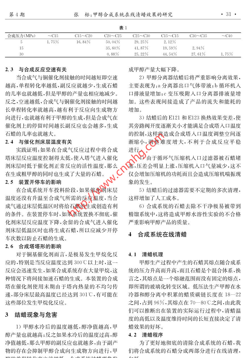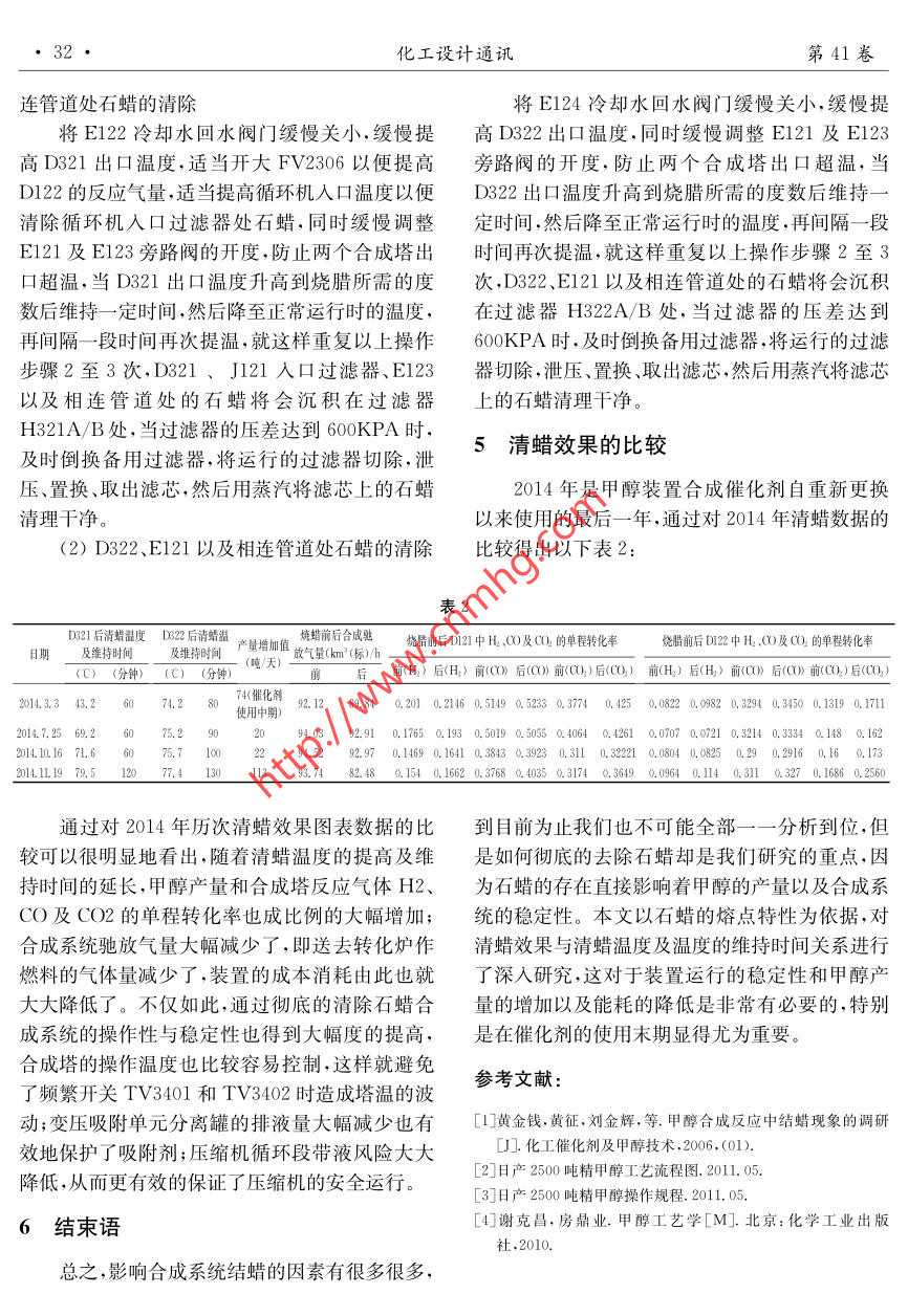 甲醇合成系統(tǒng)在線清蠟效果的研究