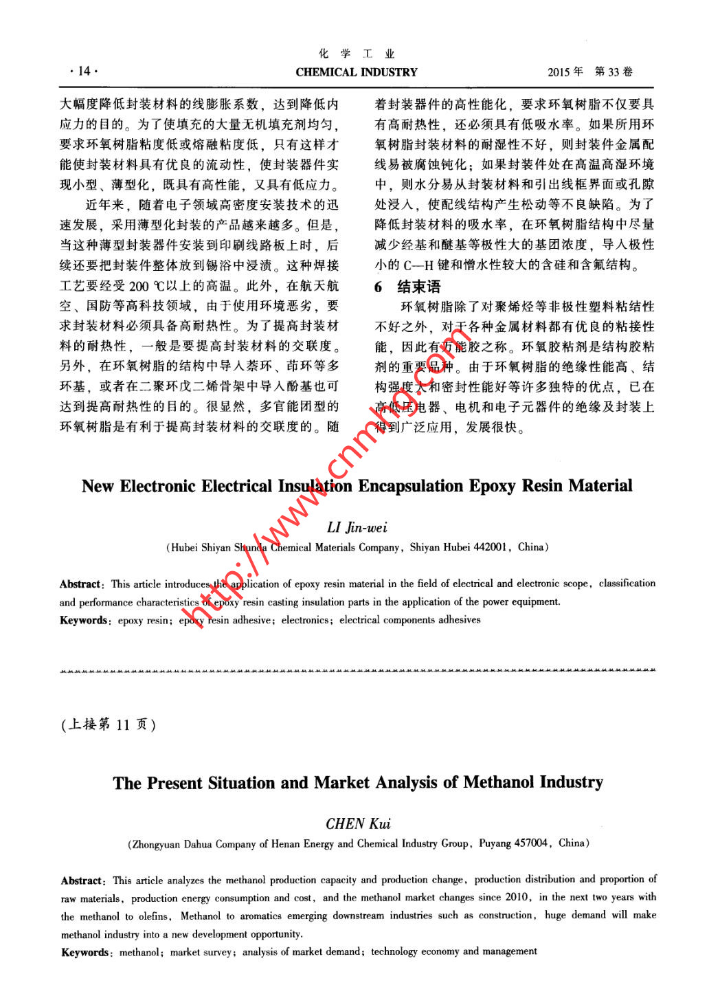 - 期刊名字:化學(xué)工業(yè)
