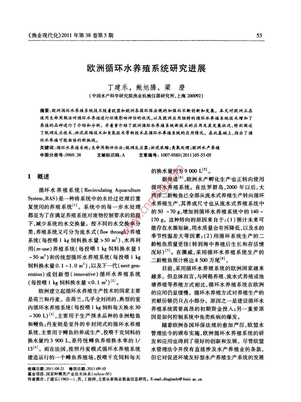 歐洲循環(huán)水養(yǎng)殖系統(tǒng)研究進(jìn)展