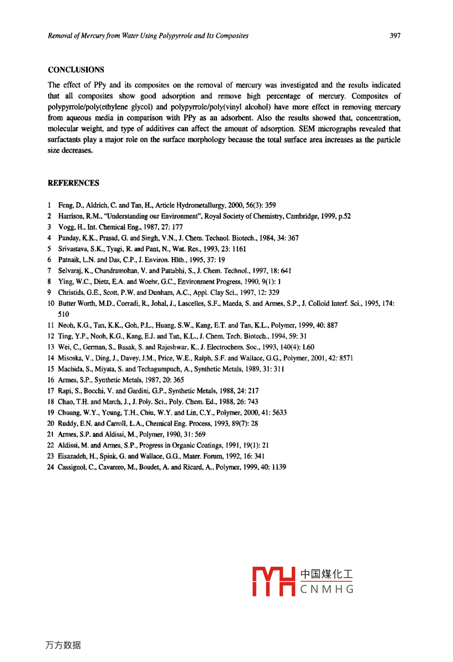 REMOVAL OF MERCURY FROM WATER USING POLYPYRROLE AND ITS COMPOSITES