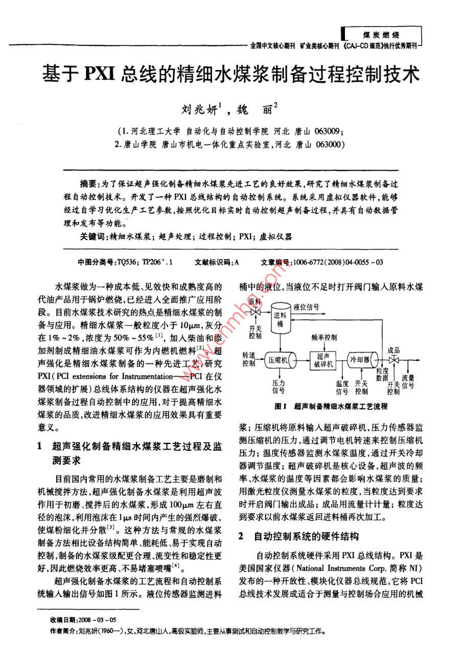 基于PXI總線的精細(xì)水煤漿制備過程控制技術(shù)