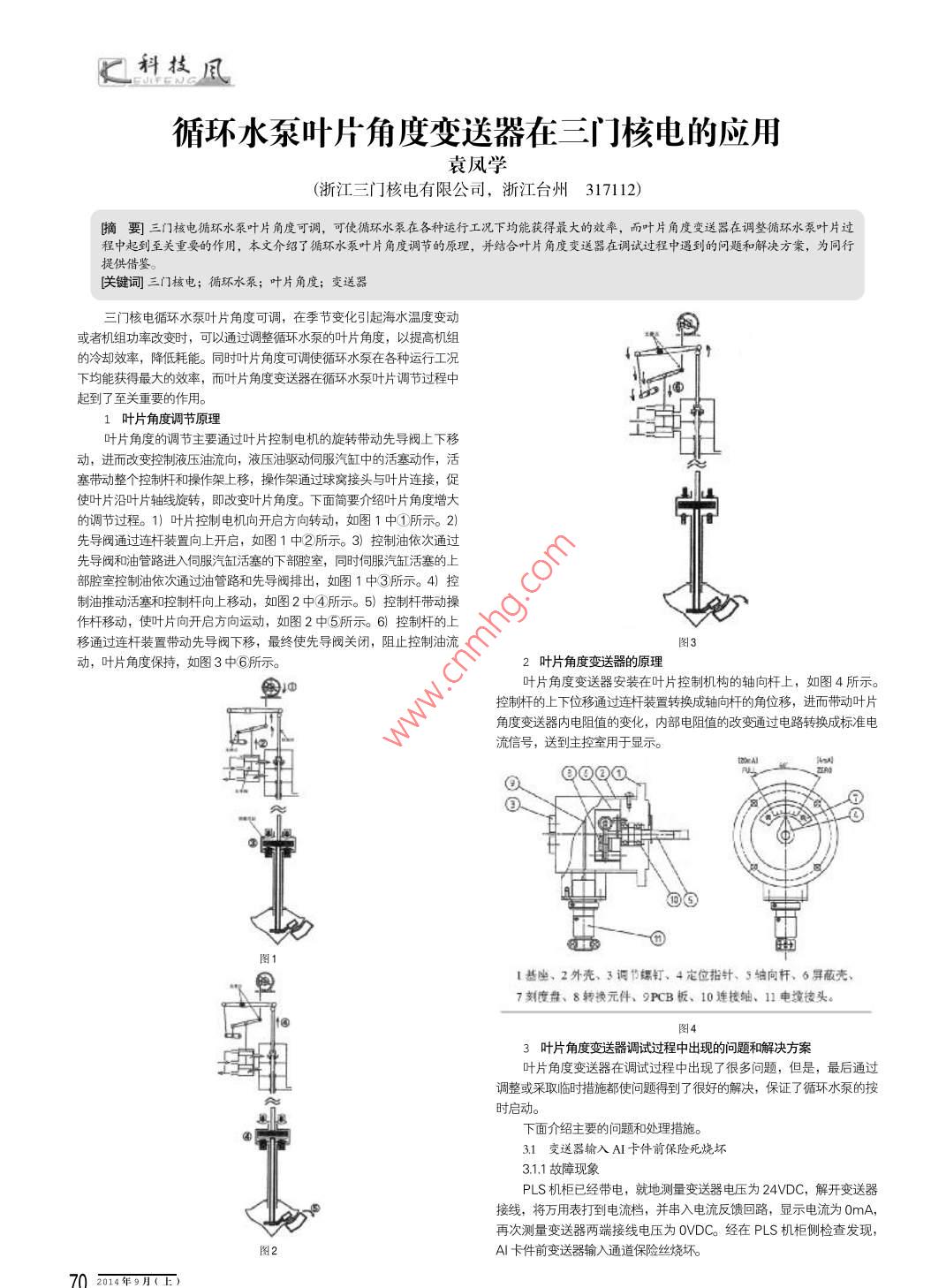 循環(huán)水泵葉片角度變送器在三門核電的應(yīng)用