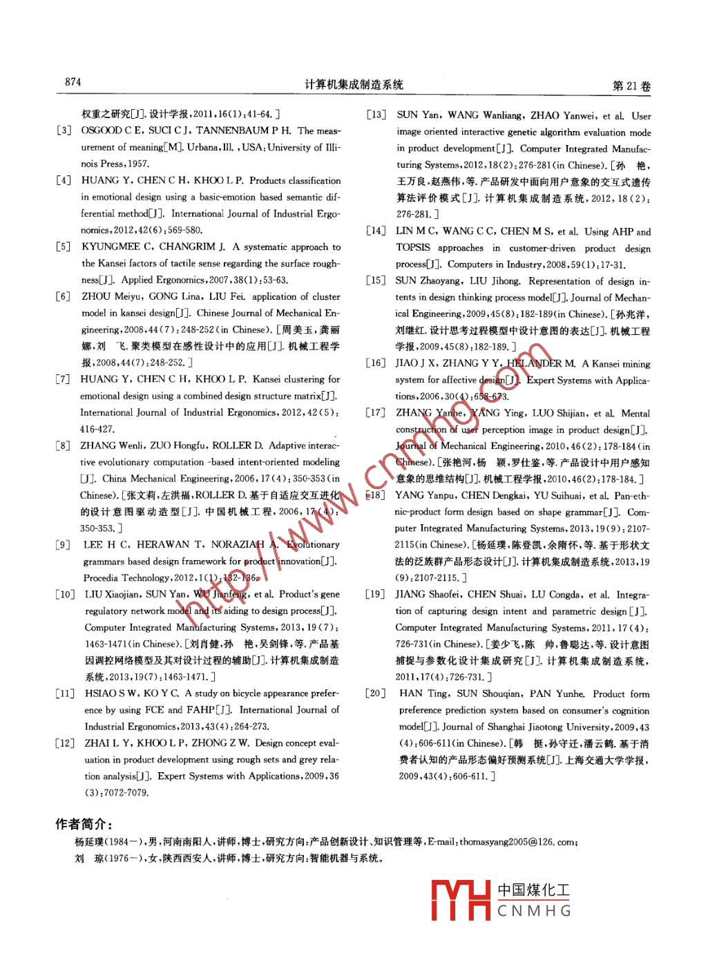 第21卷第4期計算機集成制造系統(tǒng)Vol. 21 No.42015年4月.Computer Integrated Manufacturing SystemsApr. 2015DOI: 10.13196/j. cims. 2015. 04. 001設(shè)計意圖驅(qū)動的產(chǎn)品形態(tài)設(shè)計方法楊延璞,劉瓊(長安大學(xué)工程機械學(xué)院,陜西西安710064)摘要:為減小用戶和設(shè)計師對產(chǎn)品形態(tài)方案的認知差異,將產(chǎn)品形態(tài)設(shè)計中的設(shè)計意圖分為設(shè)計需求意圖、設(shè)計編碼意圖和設(shè)計解碼意圖,建立了設(shè)計意圖模型,構(gòu)建了以滿足用戶需求意圖、體現(xiàn)設(shè)計師設(shè)計編碼意圖及減小用戶解碼與設(shè)計師編碼之間差異為目標(biāo)的設(shè)計意圖模型求解算法,探討了設(shè)計意圖驅(qū)動的產(chǎn)品形態(tài)設(shè)計過程,研究了基于交互式遺傳算法的設(shè)計意圖求解方法。以家用轎車前臉形態(tài)設(shè)計為例,分別進行了設(shè)計需求意圖獲取與映射、設(shè)計編碼意圖表達以及交互遺傳解碼研究,驗證了所提方法的有效性。關(guān)鍵詞:設(shè)計意圖;產(chǎn)品形態(tài)設(shè)計;設(shè)計需求;設(shè)計編碼;設(shè)計解碼;交互式遺傳算法中圖分類號:TB472文獻標(biāo)識碼:AProduct form design method driven by design intentYANG Yar pu, LIUQiong(School of Construction Machinery, Chang 'an University, Xi'an 710064, China)Abstract: To reduce the cognition difference of product form between users and designers, the design intent in prod-uct form design process was divided into design need intent, design encoding intent and design decoding intent, ancthe design intent model was constructed. A solution algorithm was proposed aiming to meet users' need intent anddemonstrate designers' design encoding intent, and reduce decoding and encoding divergence between users and de-signers. The process of product form design driven by design intent was discussed. Interactive Genetic Algorithms(IGA) was applied to seek an itelligent solution of design intent. The family car face design was taken as an exam-ple to verify the effectiveness of the proposed method by researching design need intent acquisition and mapping, de-sign encoding intent expression and design evolution and decoding based on IGA were researched respectively.Key words: design intent; product form design; design need; design encoding; design decoding; interactivegenetic algorithm程,也是產(chǎn)品信息的進化過程,不僅包括設(shè)計師對產(chǎn)0引言品形態(tài)信息的編碼,還包括用戶通過認知過程進行產(chǎn)品形態(tài)是產(chǎn)品的物質(zhì)載體,傳達著產(chǎn)品的物的解碼。用戶需求信息、設(shè)計師編碼過程與用戶解質(zhì)功能與精神功能,是用戶與設(shè)計師溝通的重要媒碼過程共同構(gòu)成產(chǎn)品形態(tài)設(shè)計意圖。隨著感性消費介。產(chǎn)品形態(tài)設(shè)計活動始于設(shè)計師的表意傳達,終與用戶體驗的發(fā)展,如何準(zhǔn)確獲取用戶設(shè)計需求意于用戶的感受與理解,其核心在于表達與溝通口。圖、捕捉設(shè)計師的設(shè)計編碼意圖、減小用戶解碼意圖該過程是面向用戶需求滿足的創(chuàng)意思考的發(fā)展過與設(shè)計師編碼意圖之間的差異,成為產(chǎn)品形態(tài)設(shè)計收稿日期:2014-07-04;修訂日期:2014-09-30. Received 04 July 2014;accepted 30 Sep. 201中國煤化工基金項目:陜西省自然科學(xué)基金資助項目(2011Q8013);中央高校基本科研業(yè)務(wù)費資助項MYHCNMH。 items: Project supported by the Natural Science Foundation of Shannxi Province, China(Na. 2011Research Funds forthe Central Universities ,China(No.2014G1251032).868計算機集成制造系統(tǒng)第21卷成功的關(guān)鍵[2]。(1)設(shè)計需求意圖在產(chǎn)品形態(tài)設(shè)計中,目前對用戶設(shè)計需求意圖設(shè)計需求意圖是用戶感性認知的反映,是產(chǎn)品的研究集中在用戶感性需求的獲取與處理,針對設(shè)形態(tài)設(shè)計的目的,屬于目的意圖。用戶感知意象的計編碼意圖和解碼意圖分別集中在產(chǎn)品形態(tài)方案的形成過程,是從形態(tài)元素到形成子意象、再形成總意生成與評價。在設(shè)計需求意圖研究方面,常用語義象的過程07。因此,用戶的設(shè)計需求意圖既包括感差異(Semantic Differential, SD)法[341] 分析并獲取性需求,又包括反映該感性需求的形態(tài)元素。感性用戶的意象感知,以聚類方法實現(xiàn)對感性需求的降需求是形態(tài)元素的語義描述,形態(tài)元素是用戶感性維處理[57]。對于設(shè)計編碼意圖,文獻[8]提出自適需求的外,顯化表達。應(yīng)機制跟蹤并捕捉設(shè)計師的形態(tài)設(shè)計意圖;文獻[9](2)設(shè)計編碼意圖將遺傳算法和形狀文法結(jié)合,通過交互式操作產(chǎn)品.設(shè)計編碼意圖是設(shè)計師心理活動的直接體現(xiàn),形態(tài)特征輔助設(shè)計編碼意圖表達;文獻[10]構(gòu)建了是設(shè)計師綜合運用各方面知識進行創(chuàng)造性設(shè)計活動產(chǎn)品基因調(diào)控網(wǎng)絡(luò)模型,用以發(fā)現(xiàn)產(chǎn)品形態(tài)要素之的綜合意圖體現(xiàn),是產(chǎn)品形態(tài)設(shè)計的直接意圖,屬于間的關(guān)系并輔助設(shè)計師進行設(shè)計編碼。對設(shè)計解碼過程意圖。設(shè)計編碼意圖包括規(guī)劃意圖、策略意圖意圖的研究主要體現(xiàn)為用戶對設(shè)計編碼方案進行評和執(zhí)行意圖。其中,規(guī)劃意圖為產(chǎn)品形態(tài)設(shè)計過程.價,常用模糊綜合評價法[、灰關(