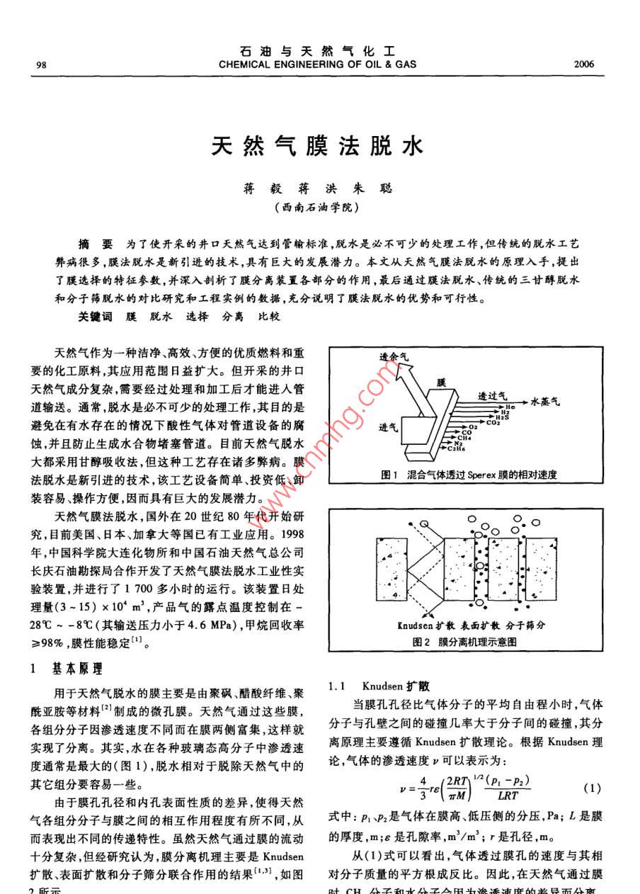 天然氣膜法脫水