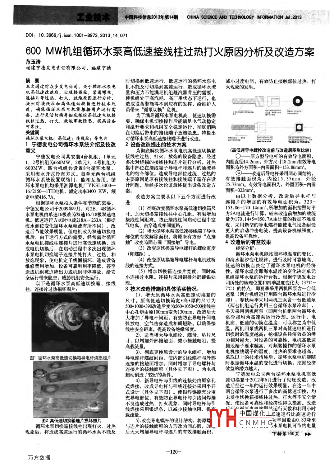 600MW機組循環(huán)水泵高低速接線柱過熱打火原因分析及改造方案