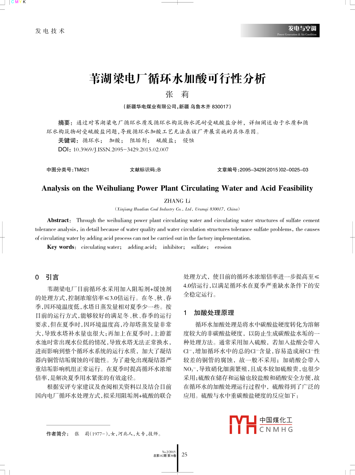 葦湖梁電廠循環(huán)水加酸可行性分析