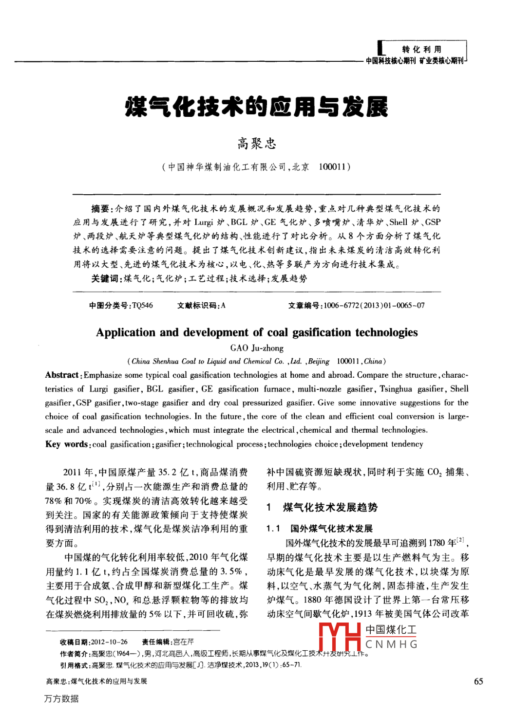 煤氣化技術(shù)的應(yīng)用與發(fā)展