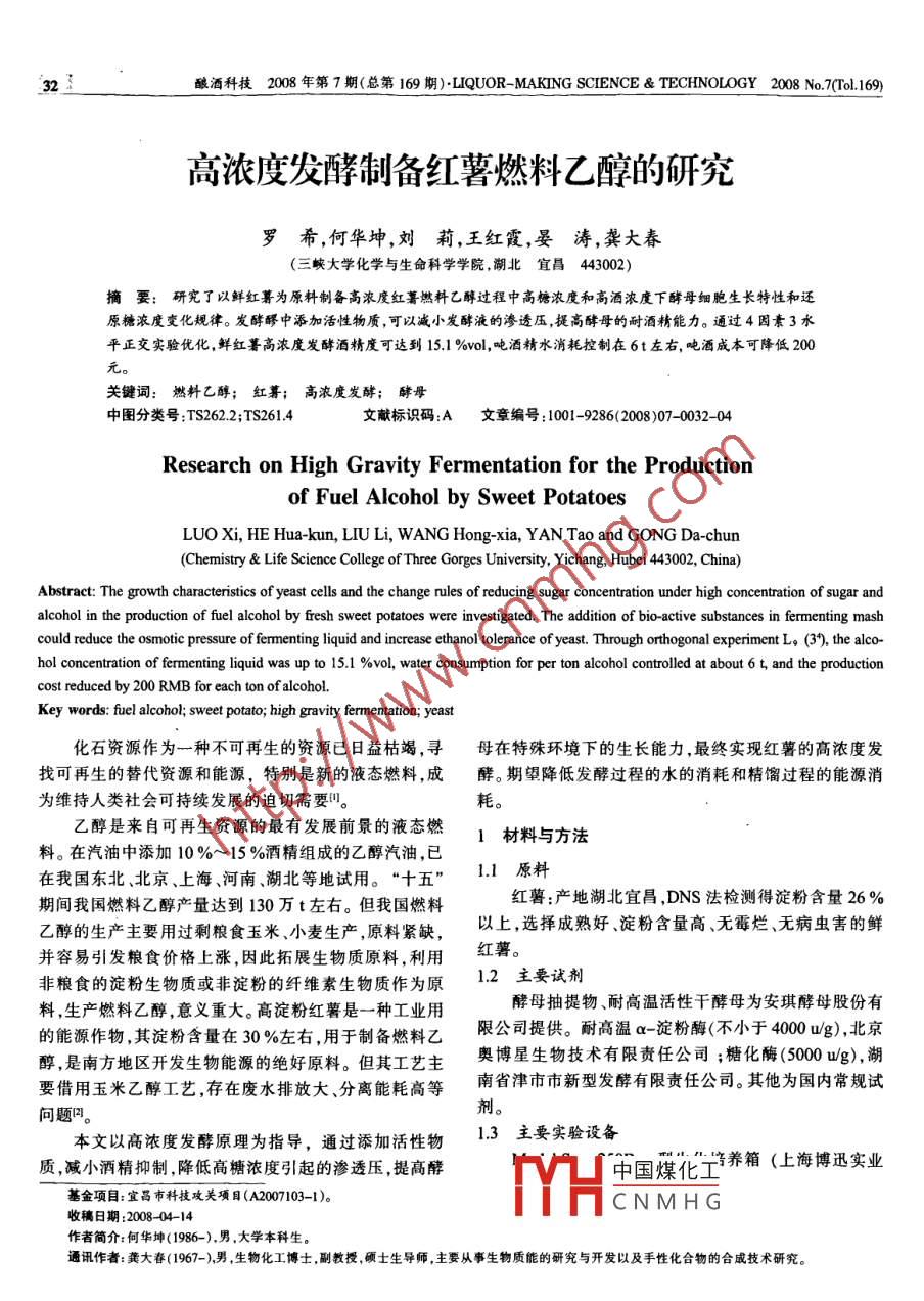 高濃度發(fā)酵制備紅薯燃料乙醇的研究