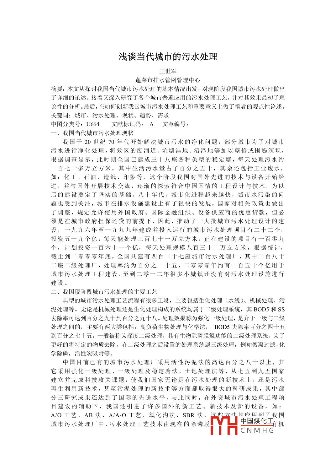 淺談當代城市的污水處理