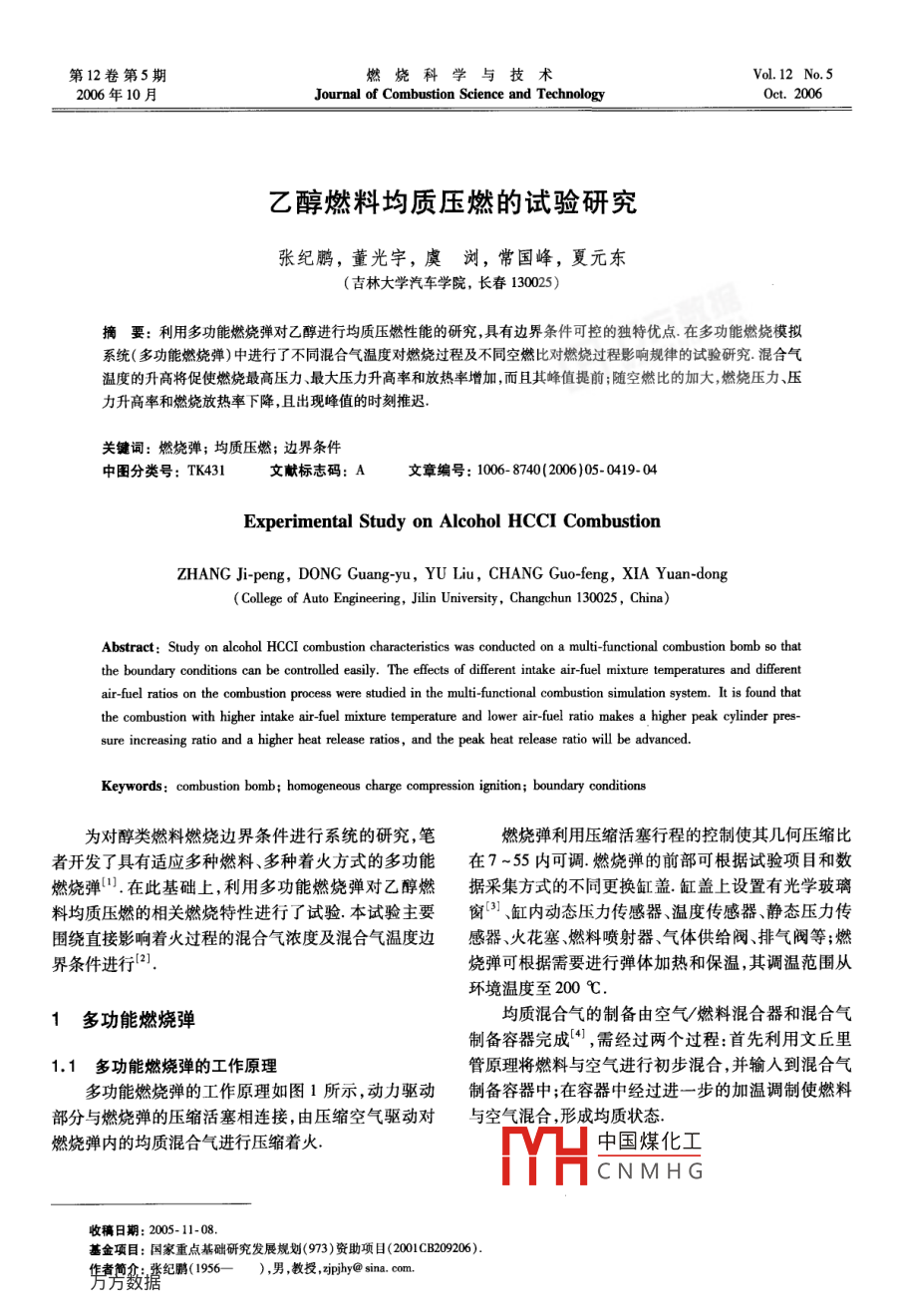 乙醇燃料均質(zhì)壓燃的試驗研究