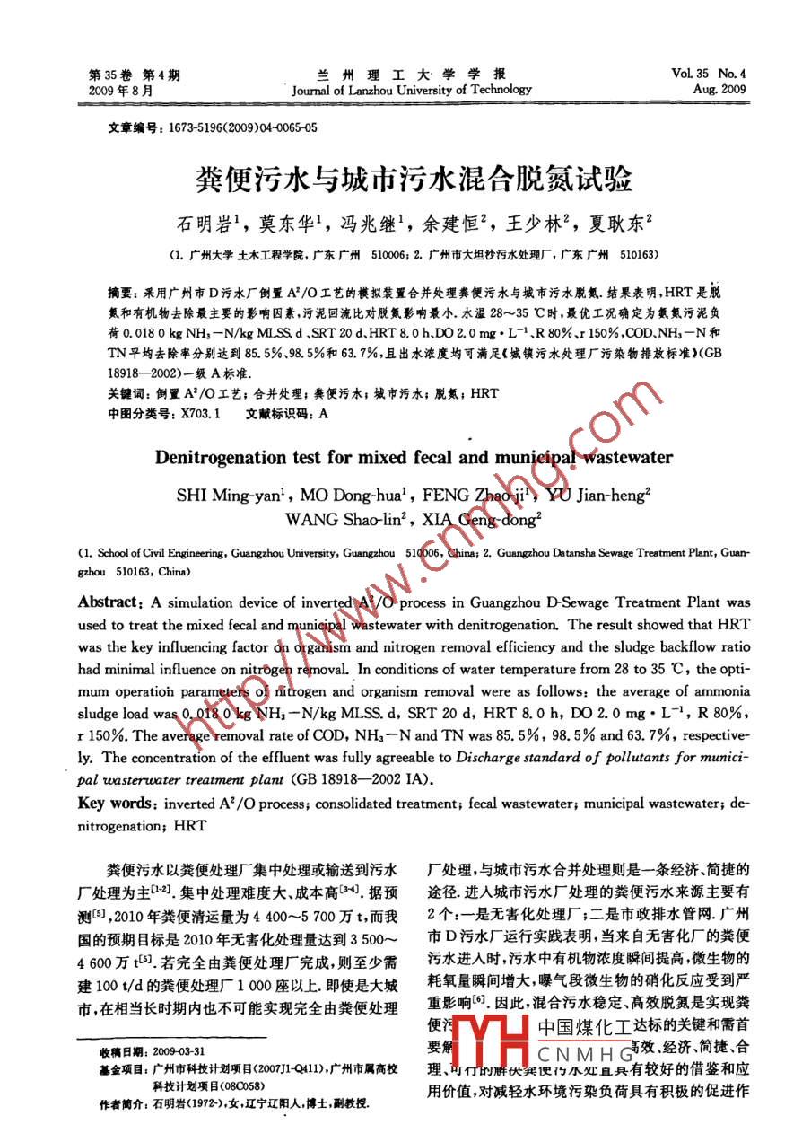 - 作者單位:廣州大學(xué),廣州市大坦沙污水處理廠