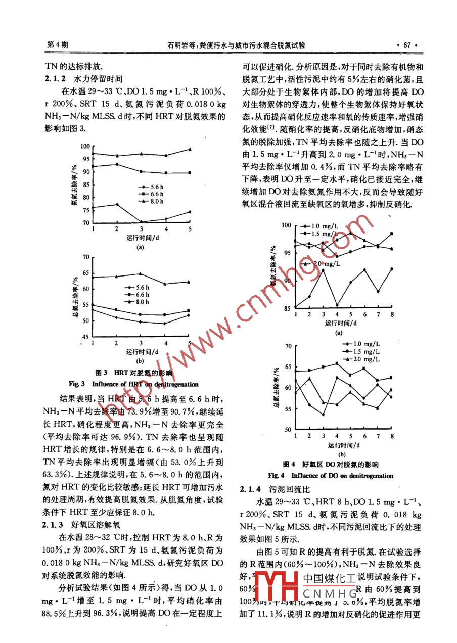糞便污水與城市污水混合脫氮試驗(yàn)