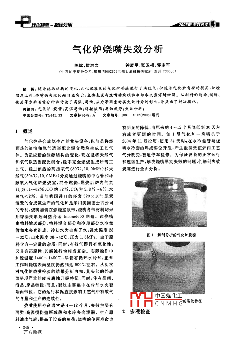 氣化爐燒嘴失效分析