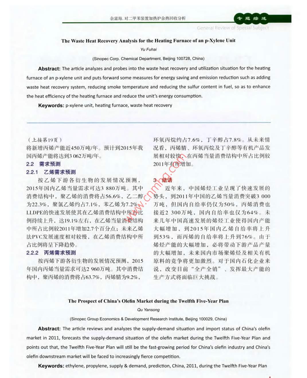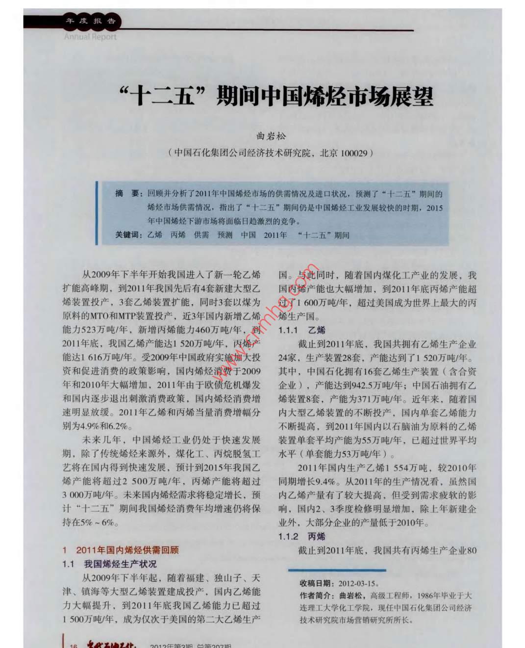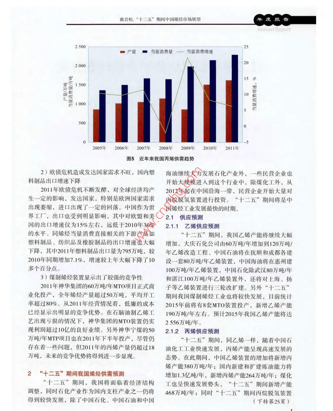 “十二五”期間中國烯烴市場展望