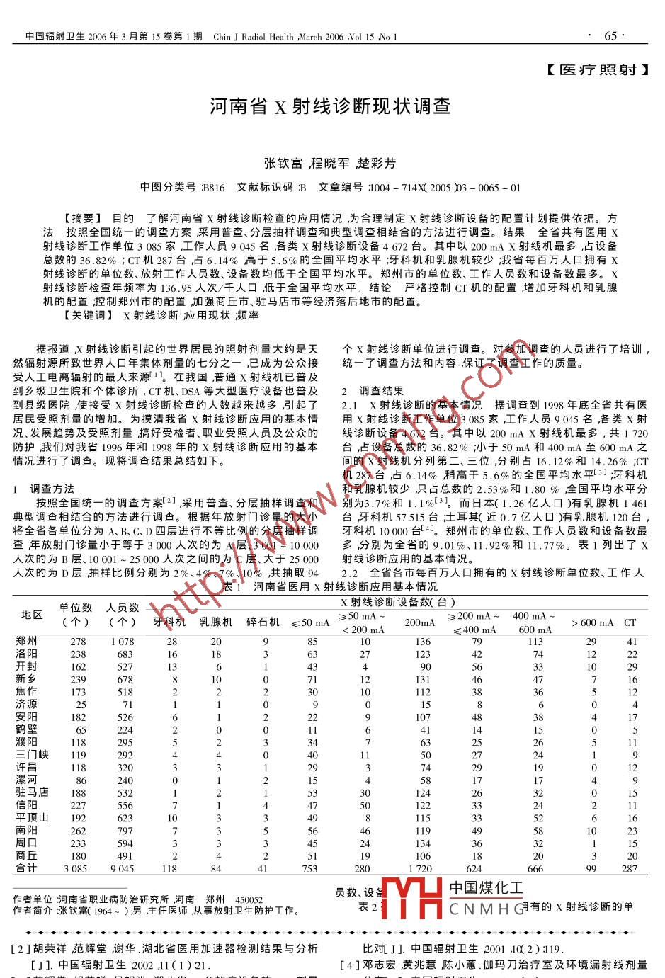 河南省X射線診斷現(xiàn)狀調(diào)查