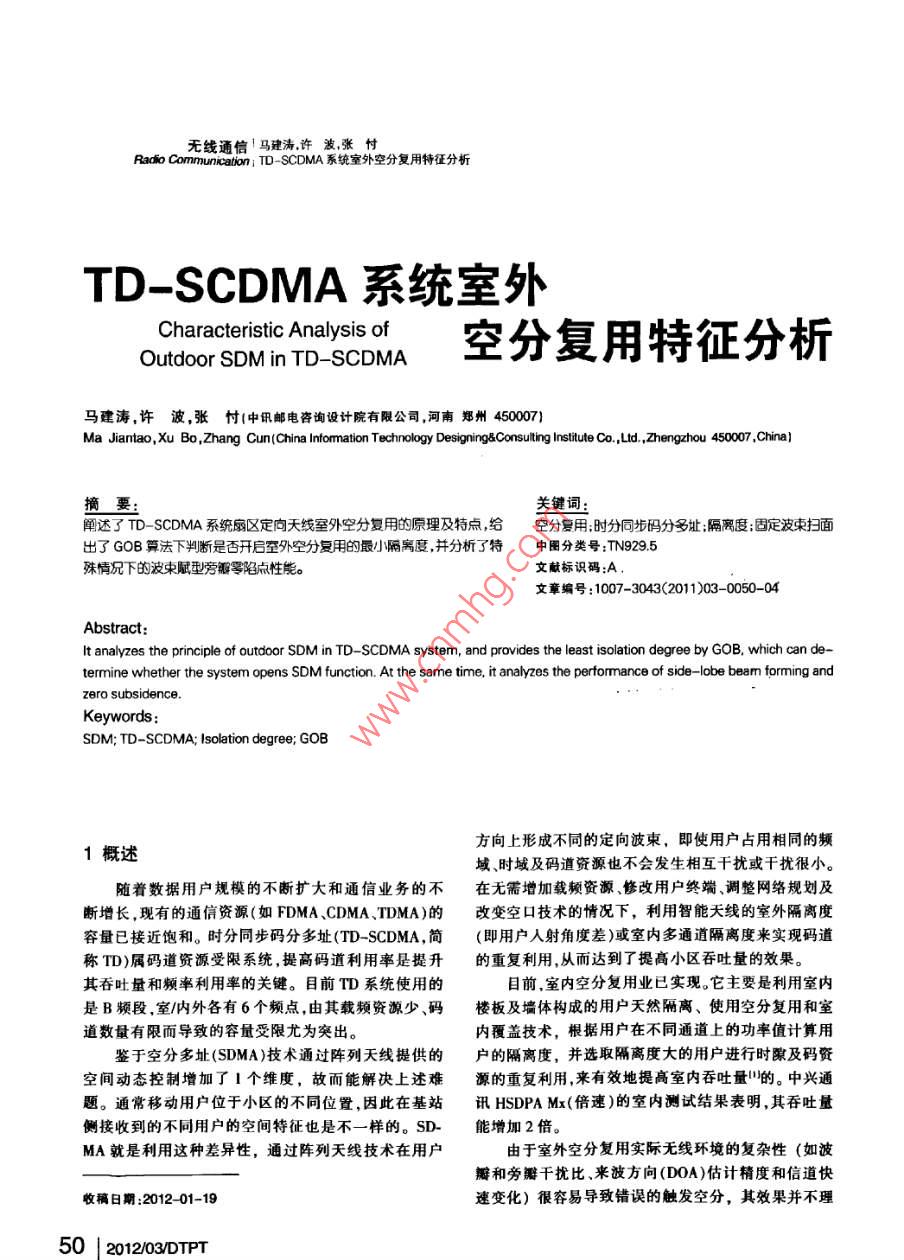 TD-SCDMA系統(tǒng)室外空分復用特征分析