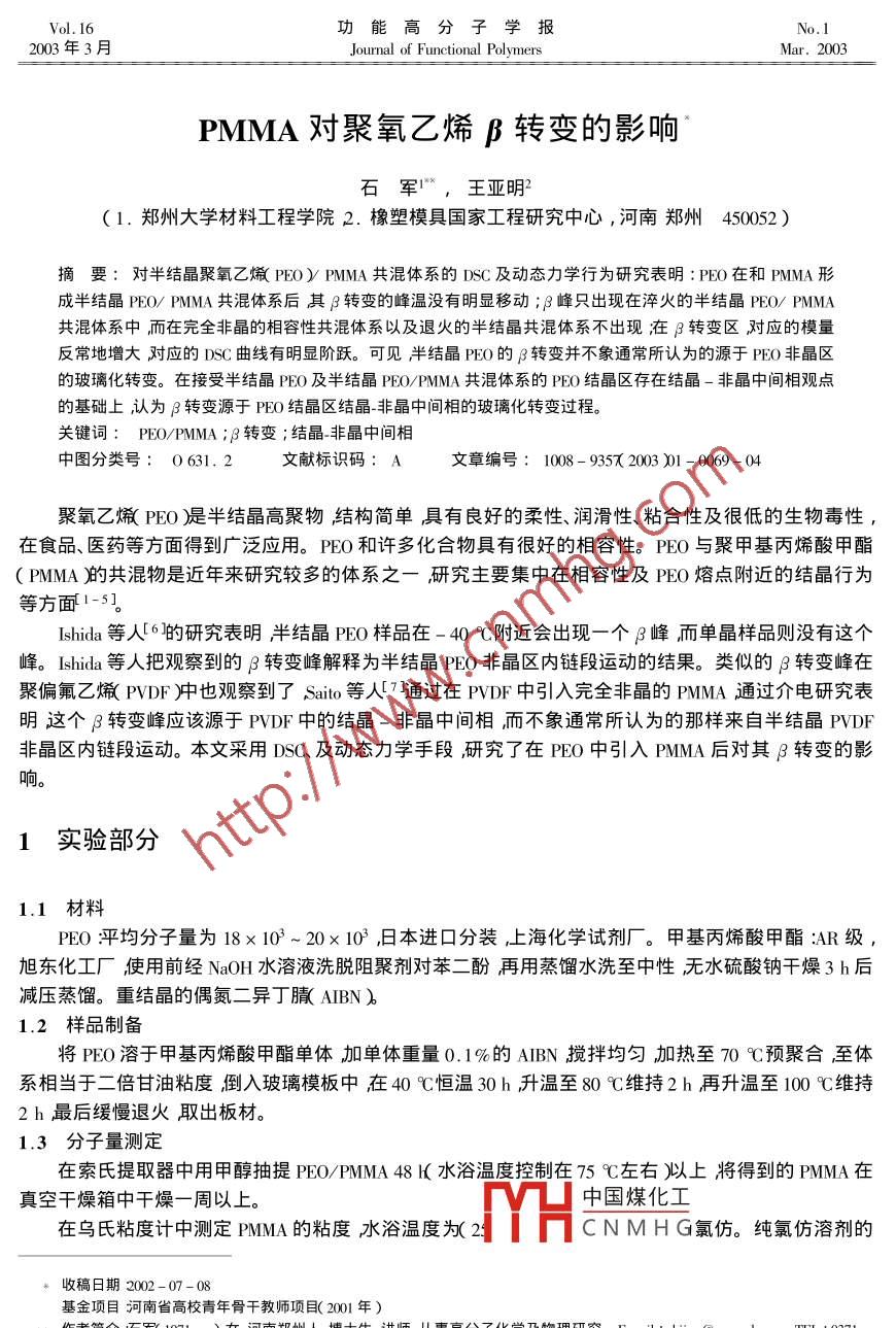 PMMA對(duì)聚氧乙烯β轉(zhuǎn)變的影響