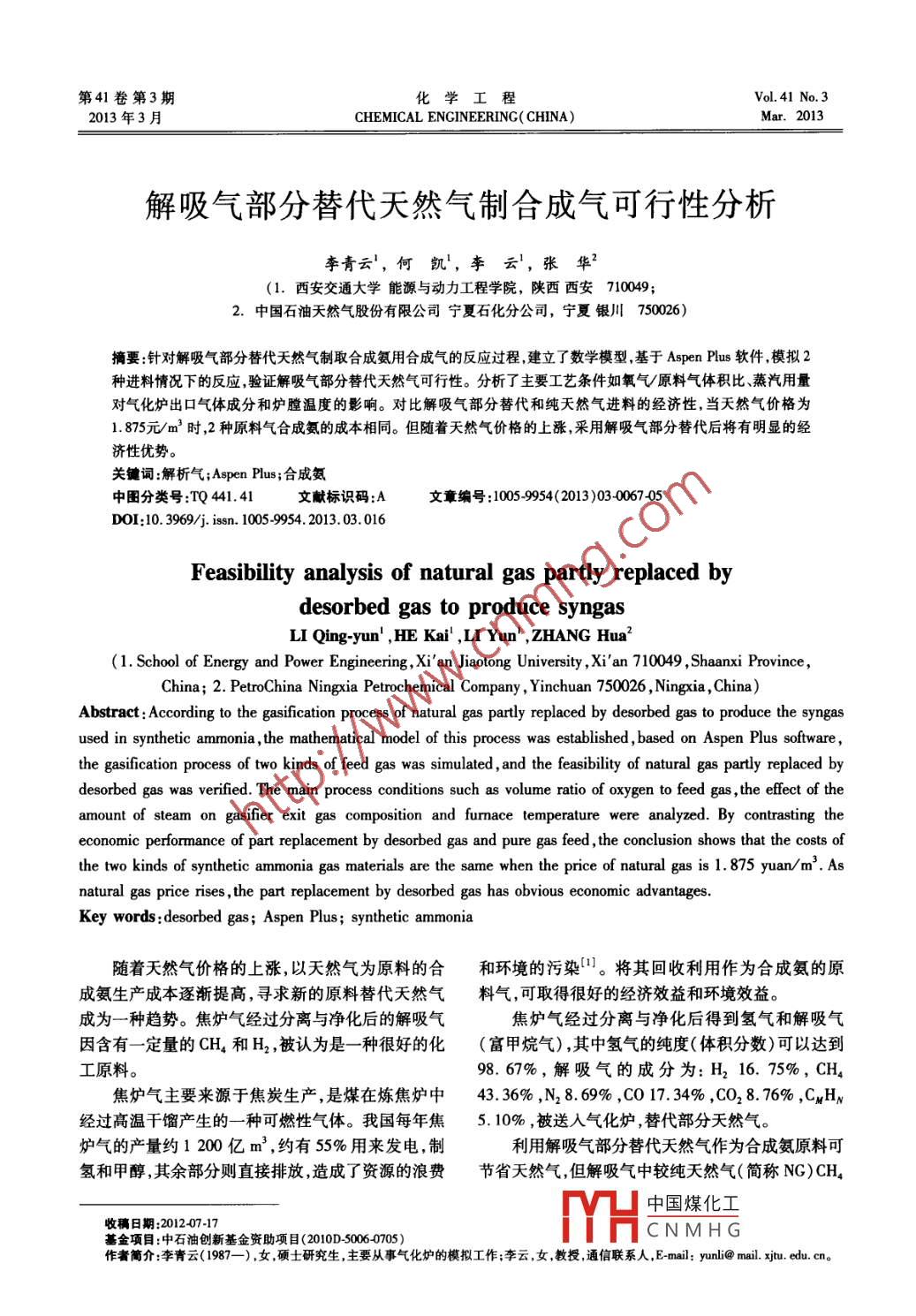 - 期刊名字:化學(xué)工程