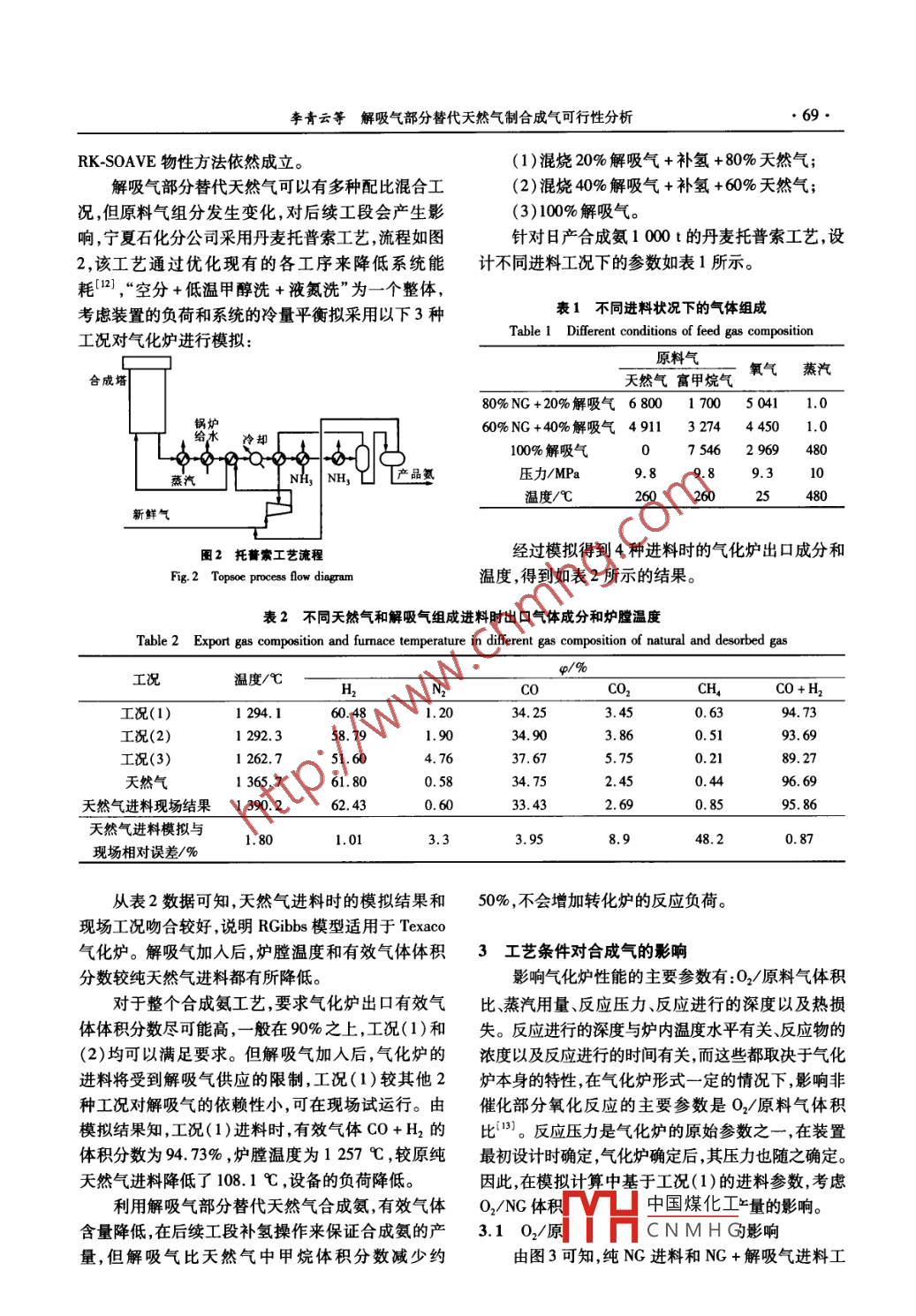 解吸氣部分替代天然氣制合成氣可行性分析