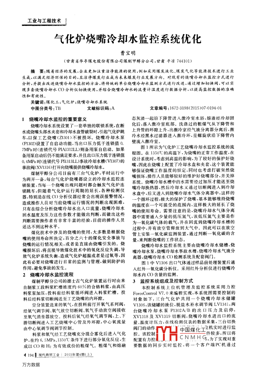 氣化爐燒嘴冷卻水監(jiān)控系統(tǒng)優(yōu)化