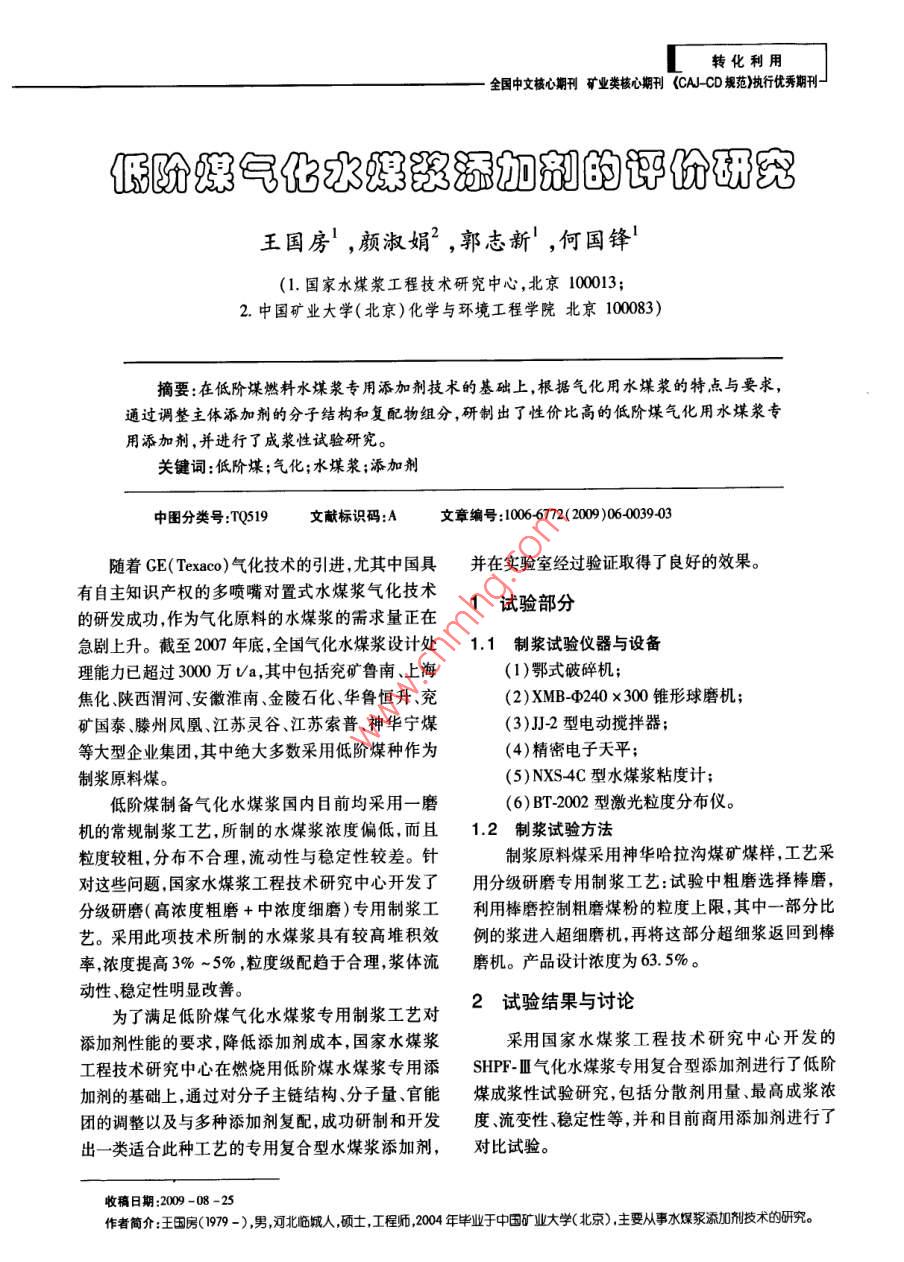 - 作者單位:國家水煤漿工程技術(shù)研究中心,中國礦業(yè)大學(xué)(北京)化學(xué)與環(huán)境工程學(xué)院