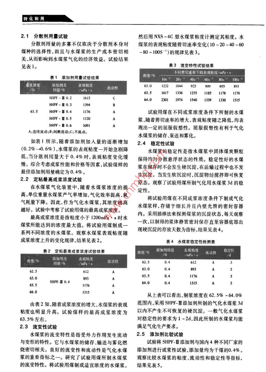 低階煤氣化水煤漿添加劑的評價(jià)研究