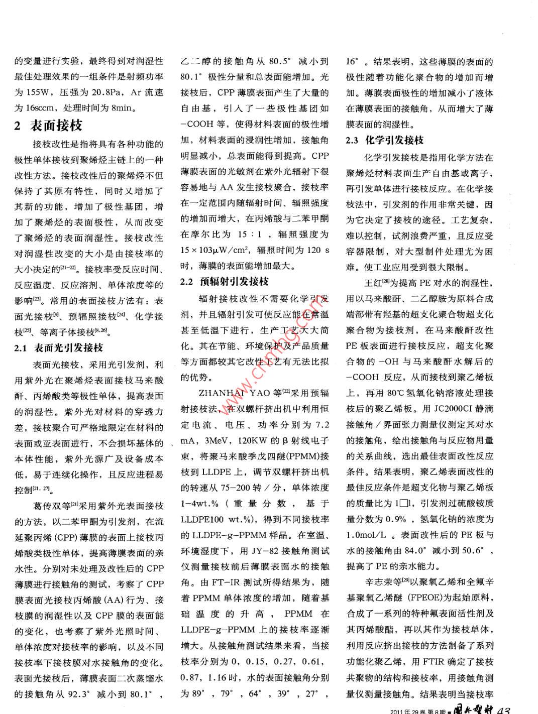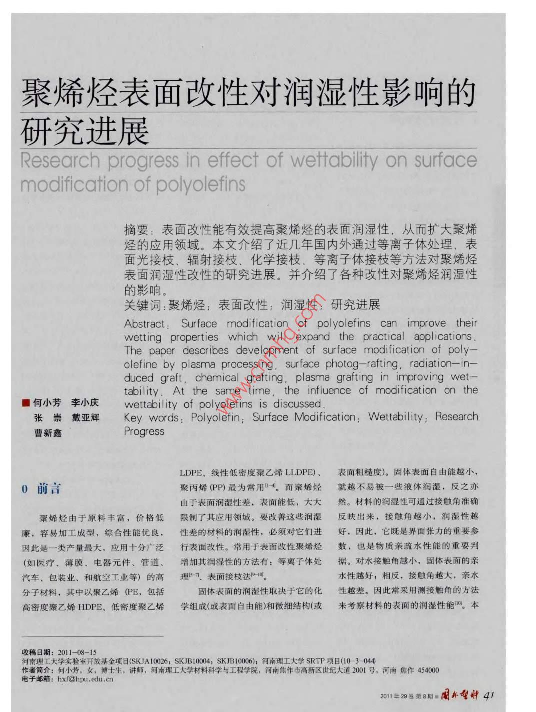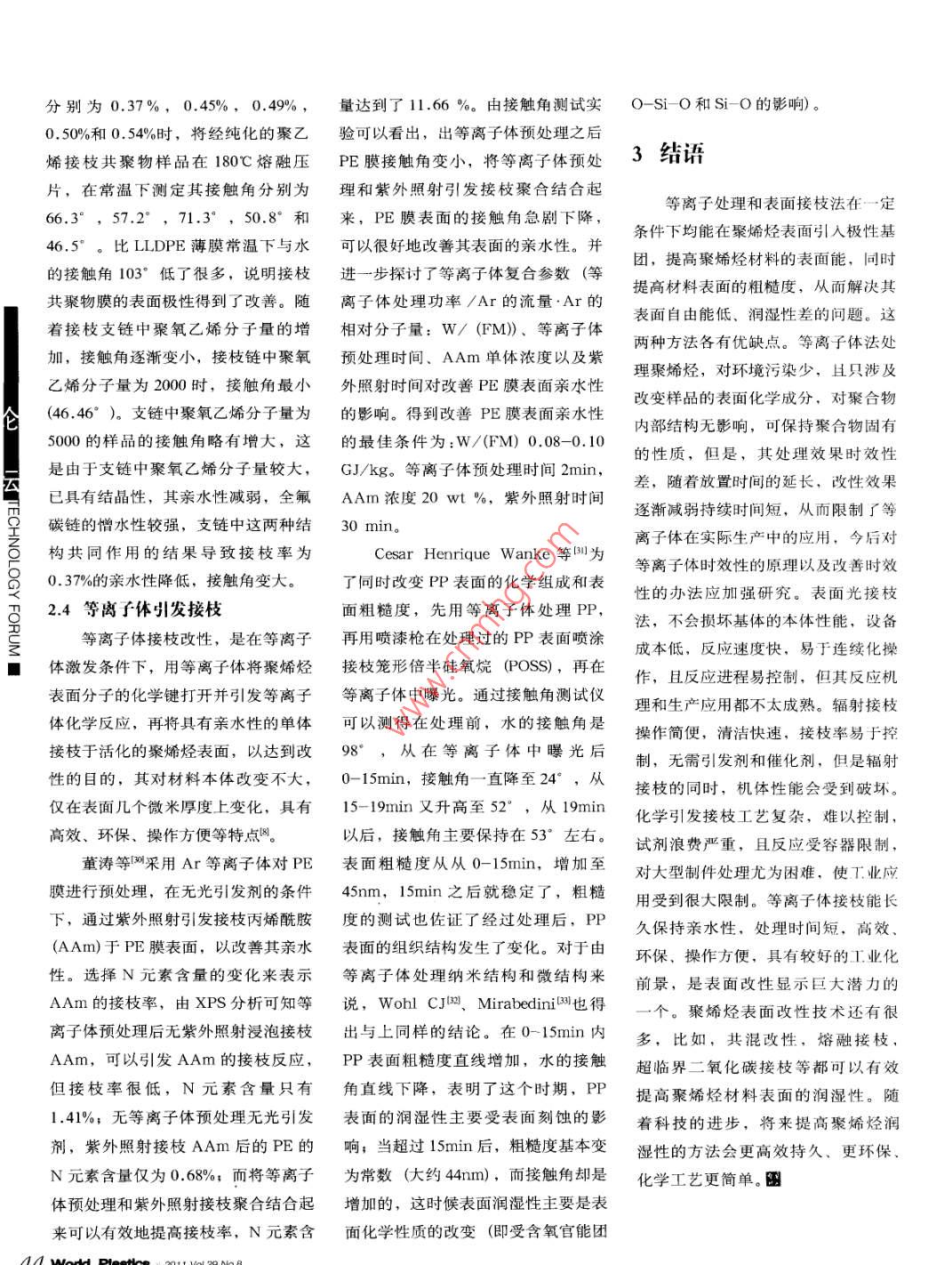 聚烯烴表面改性對潤濕性影響的研究進展
