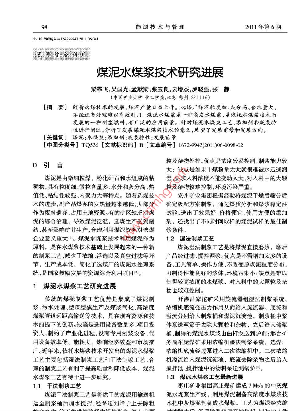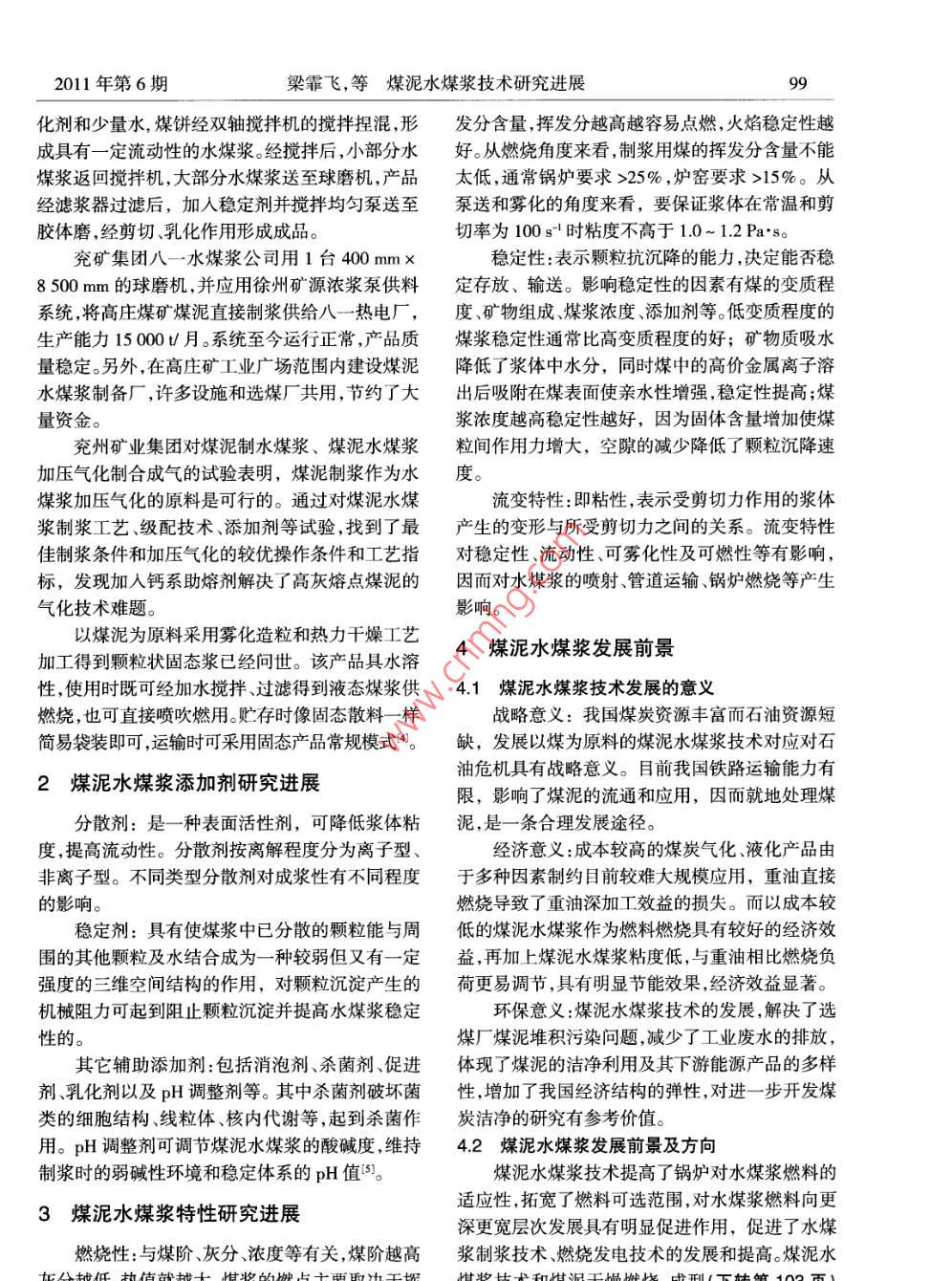 煤泥水煤漿技術(shù)研究進展