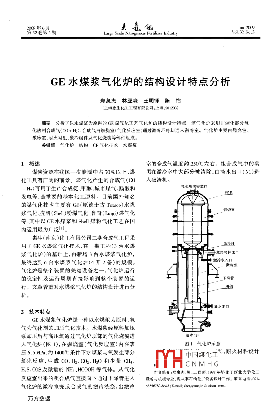 GE水煤漿氣化爐的結(jié)構(gòu)設(shè)計特點分析