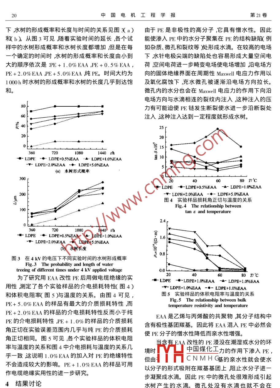 乙烯-丙烯酸共聚物改性聚乙烯的水樹(shù)生長(zhǎng)研究