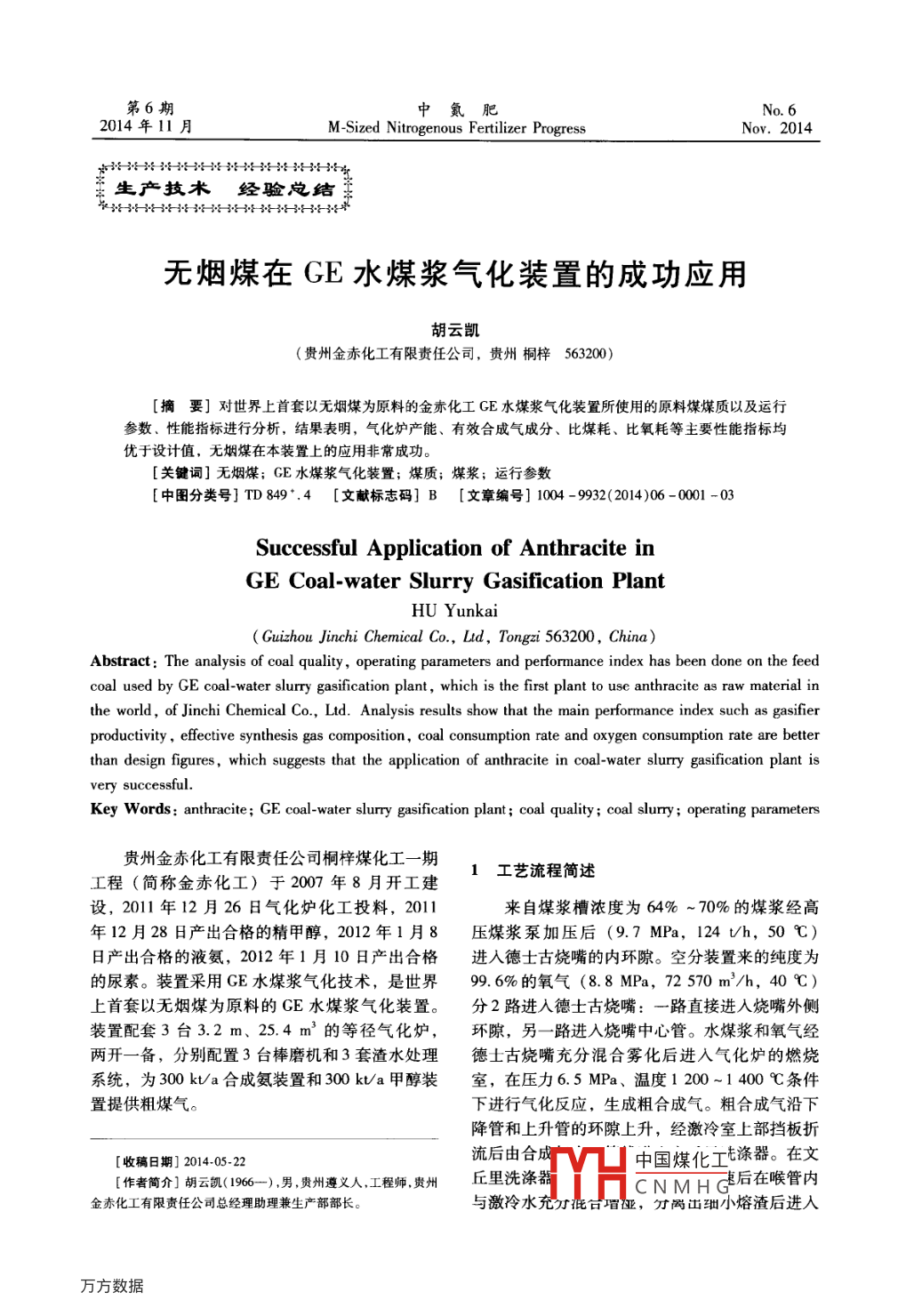 無煙煤在GE水煤漿氣化裝置的成功應用