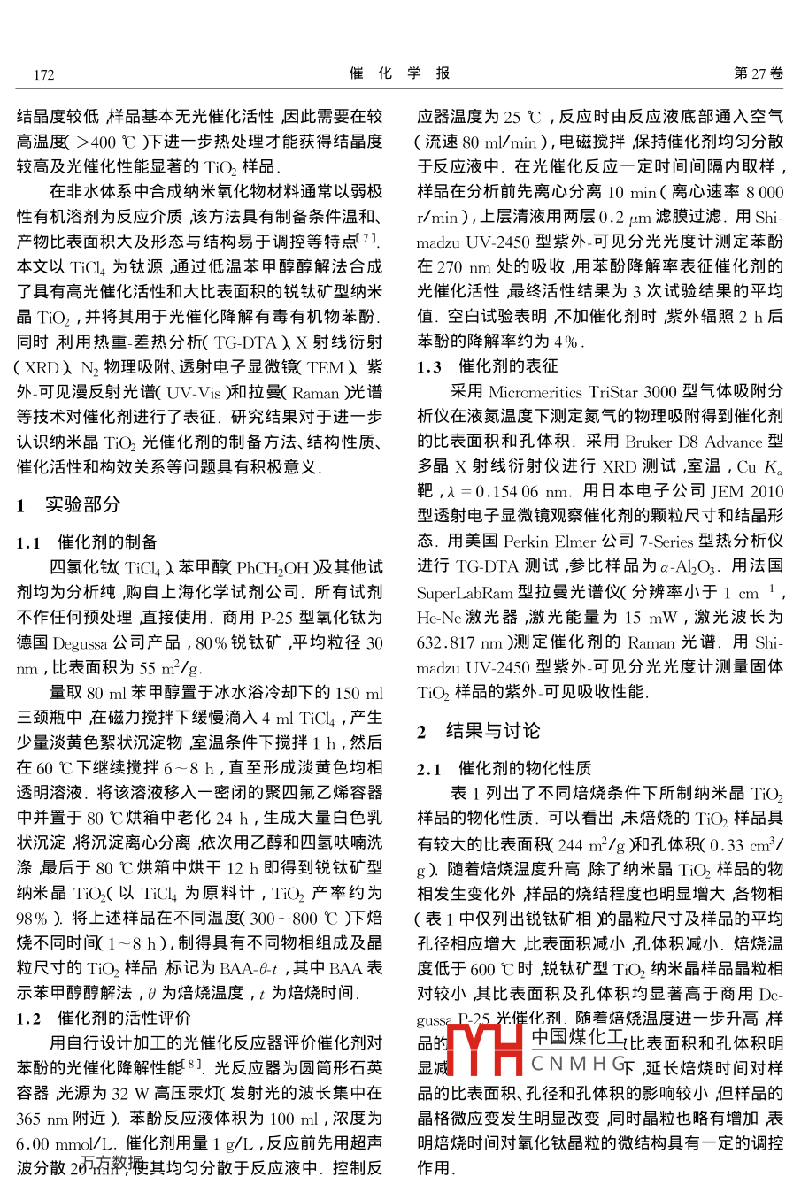 低溫苯甲醇醇解法制備高活性銳鈦礦型納米晶TiO2光催化劑