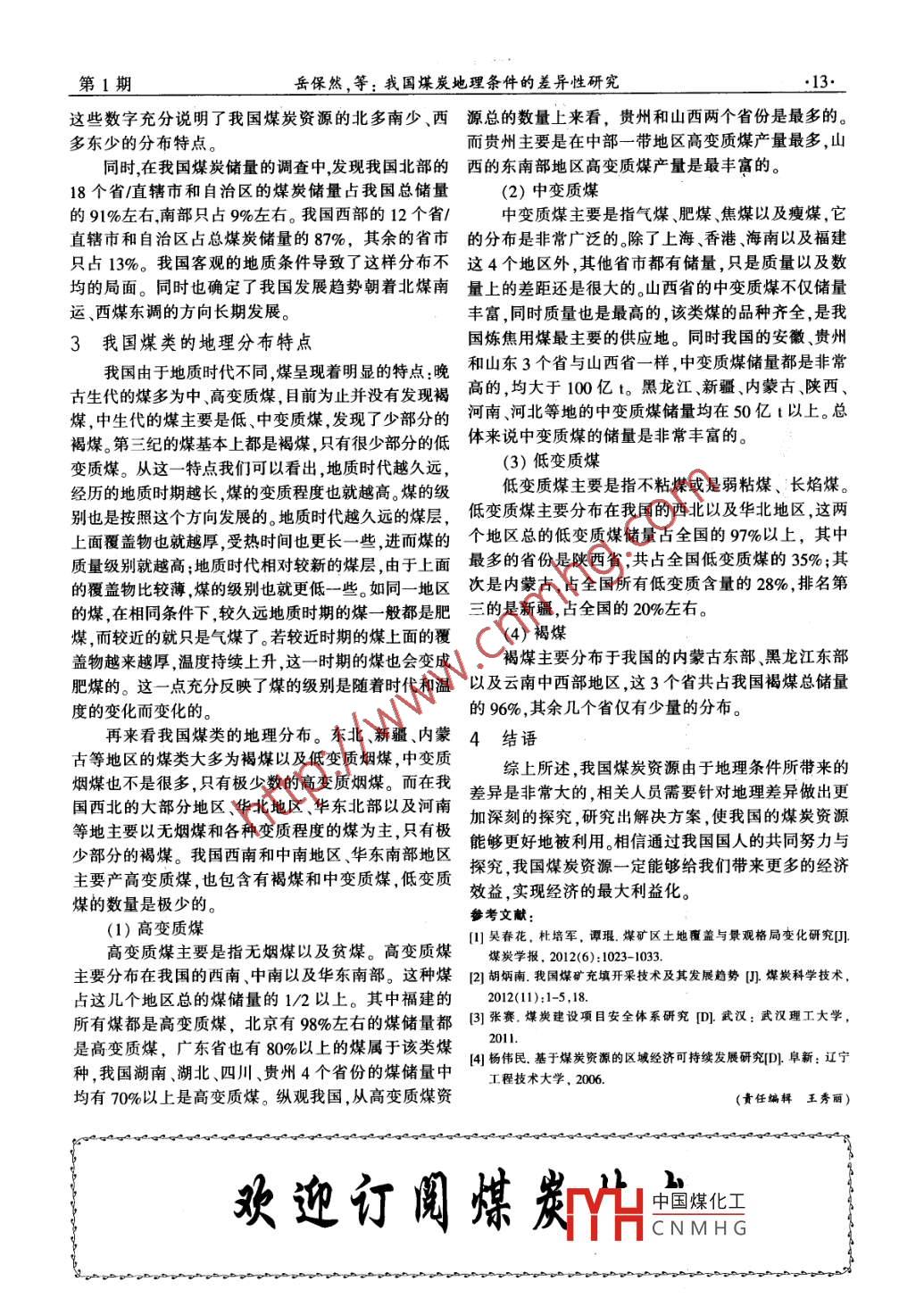 我國(guó)煤炭地理?xiàng)l件的差異性研究