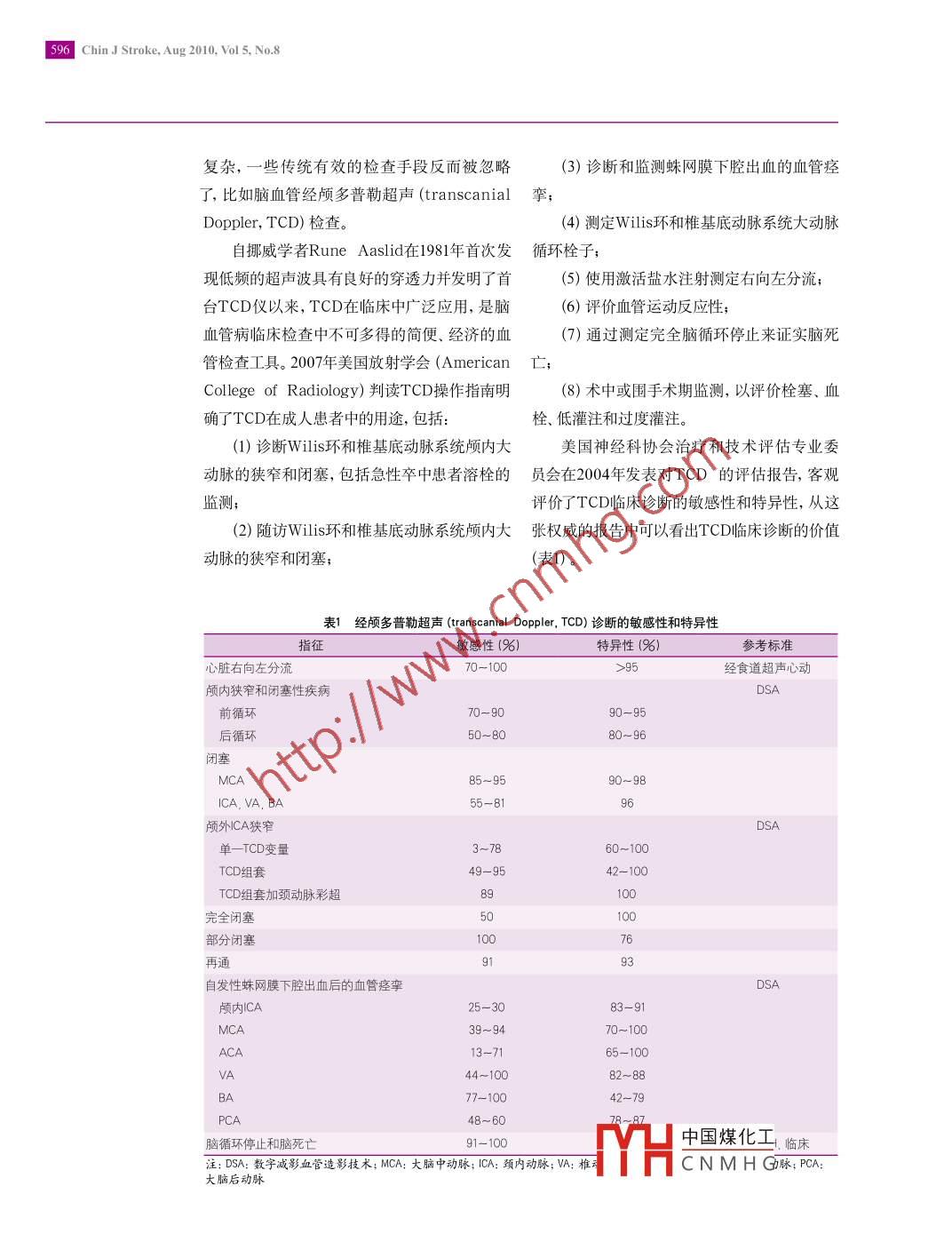 中國卒中雜志2010年8月第5卷第8期| 595 I●主編手記●新技術的迷失■王擁軍[關鍵詞]超聲檢查, 多普勒,經(jīng)顱;腦血管障礙前不久去看了《唐山大地震》,真的震撼,任何人可以建 立- - 個自定義的雜志。它可以將作者單位100050 北京市不僅僅是因為當年我的第一份工作就是在那 素材 自動化合成,突出重點、主次分明,只要點首都醫(yī)科大學附屬北京座城市,有著很多的回憶和感動,還因為電腦擊一 篇文章, 會“放大”去顯示更多的內(nèi)容,點天壇醫(yī)院神經(jīng)內(nèi)科通信作者技術如此逼真的還原了那個陣痛的時刻,讓擊一個視頻,就會在文章內(nèi)播放。很多人感嘆王擁軍三十四年后今天的人們可以如此感同身受(圖這 個軟件最終會徹底革命出版方式,同時也會yongjunwang111@yahoo.com.cn1)。改變?nèi)藗兊拈喿x習慣(圖2)。23秒,32年。YFLIPBOARDRSS READER (SAFARI)圖2 FLIPBOAD大沙震其實蘋果的設計只是關于技術進步想象的冰山- -角,誰也無法預測隨著技術的進步我們的生活還會發(fā)生些什么,或許人類就會和“阿凡達”共處,或許人類也最終喪失了作為自然人圖1電影《唐山大地震》的屬性?常常會感慨科技的進步,也常常感慨這樣學術界- -直有關于科技進步利弊的辯論,進步下的我們的生活似乎總有些似是而非。就如果從哲學的角度說, 凡事總是有好有壞,甚至好像《唐山大地震》中的再現(xiàn),在那一刻時空有些關鍵時刻,卻是最簡單的最實用。比如最仿佛就是停留在了1976年那個傷心的瞬間,可近 舟曲災區(qū),據(jù)說很多人都是通過廣播、通過擦掉眼淚當我們走出影院,- -切卻依舊歌舞升收音機了 解救災進展,找尋親人的,其實某種平。程度上來說這也是一個悖論,人們總是希望有曾經(jīng)在網(wǎng)上看到一篇文章《指尖的創(chuàng)意未最 先進的、最多功能的、最復雜運算的,但其來》,說隨著IPHONE4和IPAD的誕生讓第三實 發(fā)現(xiàn)其實最便捷的往往是最簡單的,也是最方應用軟件開發(fā)者興奮異常,他們針對IPAD和實用的。中國煤化工IPHONE4推出了許多非常炫酷的應用。其中有聯(lián)想到我們的醫(yī)療CNM HG-項是FLIPBOARD軟件,據(jù)說應用這個軟件, 現(xiàn)在的檢查手段越來越多,儀器設備也越來越596 Chin J Stroke, Aug 2010, Vol 5, No.8復雜,一些傳統(tǒng)有效的檢查手段反而被忽略(3)診斷和監(jiān)測蛛網(wǎng)膜下腔出血.的血管痙了,比如腦血管經(jīng)顱多普勒超聲(transcanial攣;Doppler, TCD)檢查。(4)測定Wilis環(huán)和椎基底動脈系統(tǒng)大動脈自挪威學者Rune Aaslid在1981年首次發(fā) 循環(huán)栓 子;現(xiàn)低頻的超聲波具有良好的穿透力并發(fā)明了首(5)使用激活鹽水注射測定右向左分流;臺TCD儀以來,TCD在臨床中廣泛應用,是腦(6)評價血管運動反應性;血管病臨床檢查中不可多得的簡便、經(jīng)濟的血(7)通過測定完全腦循環(huán)停止來證實腦死管檢查工具。2007年美國放射學會(American亡College of Radiology) 判讀TCD操作指南明(8)術中或圍手術期監(jiān)測,以評價栓塞、血確了TCD在成人患者中的用途,包括:栓、低灌注和過度灌注。(1)診斷Wilis環(huán)和椎基底動脈系統(tǒng)顱內(nèi)大美國神經(jīng)科協(xié)會治療和技術評估專業(yè)委動脈的狹窄和閉塞,包括急性卒中患者溶栓的員會 在2004年發(fā)表對TCD的評估報告,客觀監(jiān)測;評價了TCD臨床診斷的敏感性和特異性,從這(2)隨訪Wilis環(huán)和椎基底動脈系統(tǒng)顱內(nèi)大張權(quán) 威的報告中可以看出TCD臨床診斷的價值動脈的狹窄和閉塞,(表1)。表1經(jīng)顱多 普勒超聲(ranscanial Doppler, TCD)診斷的敏感性和特異性指征敏感性(%)特異性(%)參考標準心臟右向左分流70-100>95經(jīng)食道超聲心動顱內(nèi)狹窄和閉塞性疾病DSA前循環(huán)70-9090-95后循環(huán)50~8080~96閉塞MCA85~9590~98ICA. VA. BA55-8196顱外CA狹窄單一TCD變量3~7860~100TCD組套49-9542-100TCD組套加頸動脈彩超3900完全閉塞50部分閉塞769193自發(fā)性蛛網(wǎng)膜下腔出血后的血管痙攣顱內(nèi)ICA25-3083-9139~9470~100ACA13-7165-100IA44~10082~883A77-10042-79PCA48~60腦循環(huán)停止和腦死亡91-100中國煤化工. 臨床注: DSA:數(shù)字減影血管造影技術; MCA:大腦中動脈; ICA: 頸內(nèi)動脈; VA:椎MHCNMHG脈;PCA:大腦后動脈中國卒中雜志2010年8月第5卷第8期| 597由于新的血管成像技術應用, TCD的使用受到挑戰(zhàn),很多TCD的研發(fā)機構(gòu)和生產(chǎn)廠商開始動搖(圖3)。在腦血管超聲檢查中,經(jīng)顱彩色編碼超聲成像(transcranial color - codedsonography, TCCS)應用開始增加,在有些方面的診斷準確性超越了TCD (表2)。圖3 經(jīng)顱彩色編碼超聲成像(transcranial color - codedsonography, TCCS)與數(shù)字減影血管造影(digtal subtractionangiog- -raphy, DSA)效果比較A: DSA; B: TCCS表2經(jīng)顱彩色編碼超聲成像(transcranial color-coded sonography, TCCS)的敏感性和特異性指征敏感性(%)特異性(%)參考標準用或不用增強劑的TCCSDSA.病理ACoA側(cè)枝循環(huán)00100PCoA側(cè)枝循環(huán)8598顱內(nèi)狹窄和閉塞性疾病全部達到100達到83≥50%MCAACA3APCA0o自發(fā)性蛛網(wǎng)膜下腔出血后的血管痙攣DSA顱內(nèi)ICA71注: DSA:數(shù)字減影血管造影技術; MCA:大腦中動脈; ICA: 頸內(nèi)動脈; VA:椎動脈; BA:基底動脈; ACA:大腦前動脈; PCA:大腦后動脈但是TCCS也有致命的缺點,例如顱骨穿削弱 了臨床對TCD檢查的依賴。這里面有國內(nèi)透力低,得不到顱內(n