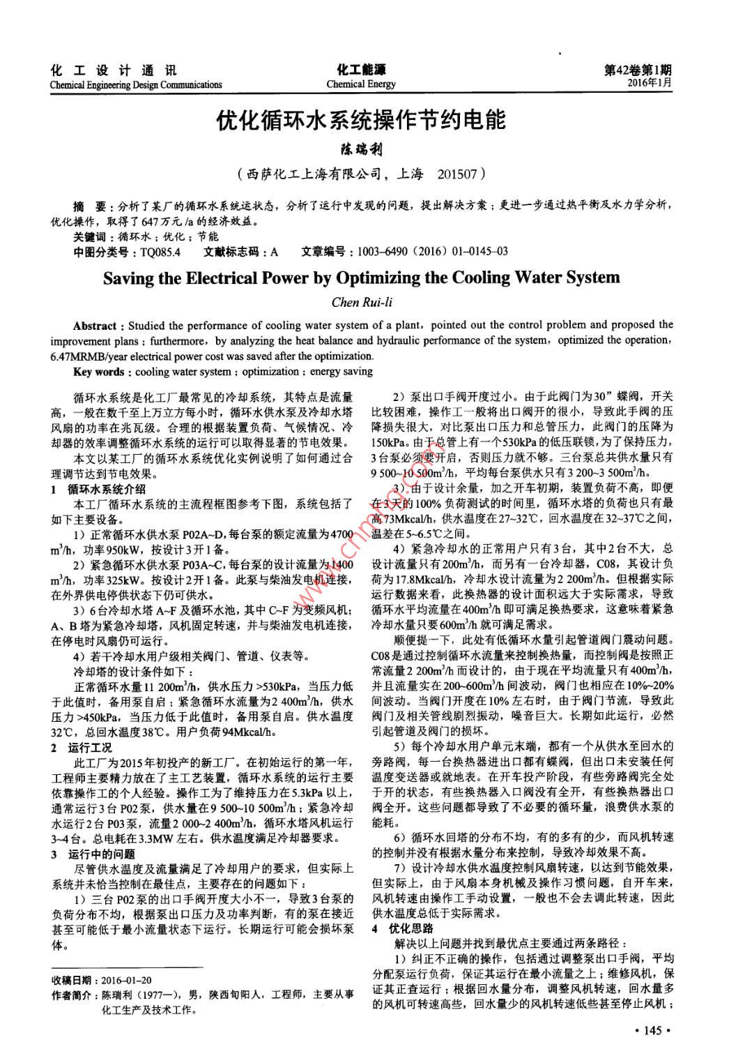 優(yōu)化循環(huán)水系統(tǒng)操作節(jié)約電能