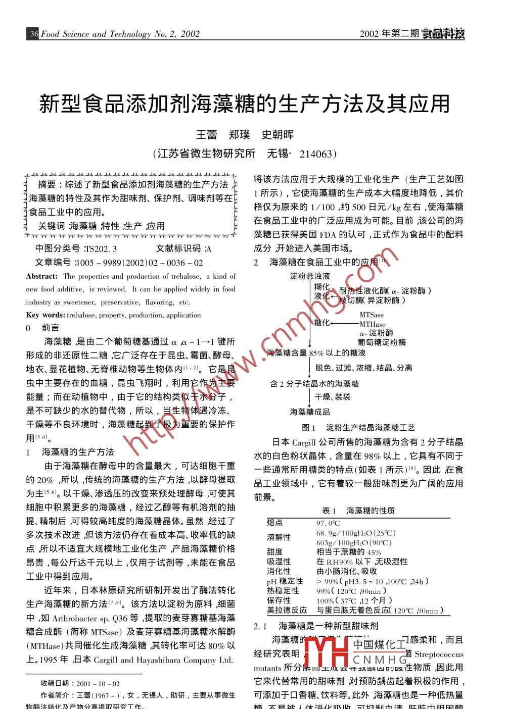 新型食品添加劑海藻糖的生產(chǎn)方法及其應(yīng)用