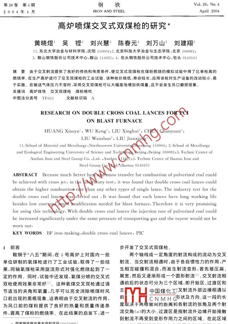 高爐噴煤交叉式雙煤槍的研究