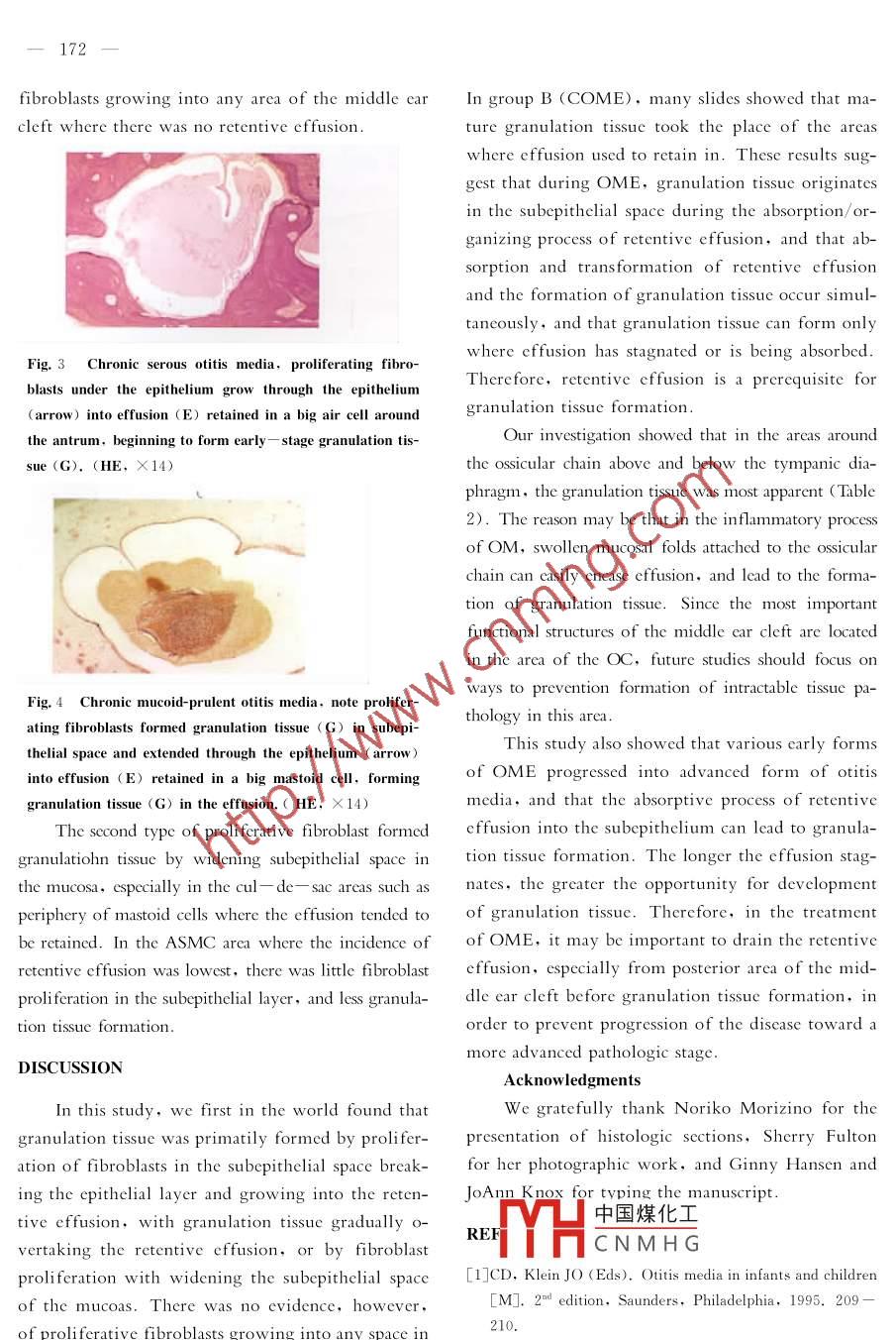 ACADJ XJTU 2003,15(2):170- 172TRANSFORMATION OF EFFUSION AND FORMATION OF GRANULATIONTISSUE In PATHOLOGIC PROCESS OF OTITIS MEDIA WITH EFFUSIONWei Junrong(韋俊榮)*,Zhang Qing(張青)“,Zhang Quanan(張全安)*De partment of Otorhinolaryngology,Second Hospital of Xi'an Jiaotong University, Xi 'an 710004,China.ABSTRACT: Objective To explore the diversity of stagnant effusions and the pathologic processes leading togranulation tissue formation in otitis media with effusion( OME). MethodsTemporal bone slides from 306 ears withOME were studied histopathologically under the light microscope. Results Results of this study revealed a pathologicprocess in witch the type and the condition of stagnant effusion in the middle ear cleft was a variable in the dynamics ofOME progression from an early stage to an advanced stage. The location of granulation tissue and retentive effusion werefound to be closely related. Conclusion Early stage granulation tissue formation exhibited a pathologic process in whichgranulation tissue formation occurred only in areas where effusion had stagnated or was absorbed. The incidence of theretentive effusion and formation of granulation tissue was much higher and the pathologic changes most extensive in thearea around the ossicular chain.KEY WORDS: transformation; formation; effusion; granulation tssue; otitis mediaCLC number: R764Document code:AArticle ID:1671-8267( 2003)02-0170-03Except for in a minority of the cases with carlyted,decalci fied,dechydrated, embedded in celloi-stage otitis media (OM) or sequelac, effusion is thedin, and sectioned at a thickness of 20 μm、Everymost common inflammatory product among the va-tenth section was stained with hematoxylin and eo-rious OM type. It is not clear whether untreated ef-sin for histologic observation.fusion results in chronic, irreversible pathologicThe temporal bones selected for this study werechanges in the middle ear cleft and mastoid-classi fied into two groups: Group A, as early patho-Chronic otitis media (COM) is mainly indicated bylogic stage OME, had evidence of effusion,swollenthe formation of granulation tissue. Granulation tis-mucosa, and infiltration of inflammatory cells, butsue is the most common L5.6 and significant repre-no granulation tissue and other intractable pathologicsentative pathologic tissue of COM. Studies on thetissues; Group B, as advanced pathologic stagefactors promoting granulation tissue formation, theOME,had evidence of effusion and granulation tis-pathologic mcchanisms, the pathologic behavior ofsue or other intractable pathologic tissue.granulation tissue formation, and on how the areasTemporal bone slides with evidence of effusionof granulation tissue formation are related to thewere classi fied histopathologically, and labeled aspathologic transformation or retentive effusion ,serous ( SOM ),purulent( POM ), mucoidwhich are important to further understand the com-(MOM),sero-purulent ( SPOM),and mucoid-pu-plex pathologic process involved and to develop ef-rulent ( MPOM),according to their de finitions .fective methods of trcatment.The incidence of retentive effusion and granu-lation tissue was compared for each of the followingMATERIALS AND METHODSareas of the middle ear cavity: The anterior semi-From the human temporal bone collection ofmiddle ear cavity (ASMC), the area around the osthe Otopathology Laboratory at the University oficu中國(guó)煤化工antrum-mastoid areaMinnesota Otitis Media Research Center,temporal(AMche area (RWN),and:THCNM H G,bone slides from 306 ears were selected from overfacial recess (FK) 1ne ASMC area was defined as500 cars with various types of OM and studied un-bounded posteriorly along a perpendicular line fromder the light microscopy. Temporal bones had beenthe top of the cone of the tympanic membranc to theremoved芳閂數(shù)據(jù)YFixed in 10% formalin, defat-promontory, anteriorly by the isthmus of the eustachian-一171-tube (ET),and superiorly by tympanic diaphragm.RESULTSThe OC arca included the attic and posterior-superi-In Group A (155 ears), the incidence of POMor tympanic cavity above the level of the inferiorwas much higher and that of SOM much lower thanedge of the stapes footplate.in Group B (sce Fig. 1). SPOM was the most com-The incidence of retentive effusion was investi-mon effusion type found in Group A,whereas .gated histopathologically and the quantity of granu-SOM was found most often in Group B.lation tissue in the different areas was evaluated andThe overall incidence of retentive effusion wassemiquantified as mild (十),moderate (++), or sC-lowest in the ASMC but much higher in the OC,vere (卅) to determine the severity of pathologicAM,RWN and FR areas (see Table 1). In Group B .changes. Histopathological observation focused on(151 ears),the incidence of the granulation tissuethe pathologic behavior of retentive effusion trans-was lowest in the ASMC,but much higher andformation and the formation of granulation tissue,more extensive in the OC and other areas (see Tableand the relationship between effusion retention and2,F(xiàn)ig. 2). The incidence of granulation tissue wasgranulation tissue formation in the above mentionedconsistently associated with retentive effusion inarcas of the midle car cleft.same area of the middle ear cleft (see Fig. 2).Table 1 The incidence of retentive effusion in different areas of the middle ear cleftASMCOCRWNFRAMGroup%Group A (155 cars)7145. 814895.513788.412681.313687.8Group B (151 ears)7650.314092.711676.810166.814294.0 .Table 2 The incidence of granulation tssue in different areasRelmtive Kilusionof the middle ear cleft for group B[n(%)]■Framdatim 1wmr90% tLocation+++ and卅80%11(7.3) 5(3.3)0(0)5(3.3)70%47(31.1) 56(37.1) 34(22.5) 90(59. 6)60%50%6R WN39(25.8) 48(31.8) 33(21.9) 81(53. 6)402R26(17.22)37(24.5) 20(13.3) 57(37.8)30953(35.1) 52(34.4) 22(14.6) 74(49.0)20%10%+: mild; H: moderate; 世: severe0C40%GrupBFig.2 Relationship between the incidence of retentive30%effusion and g