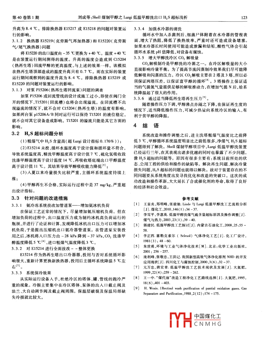 Shell煤制甲醇之Lurgi低溫甲醇洗出口H_2S超標淺析