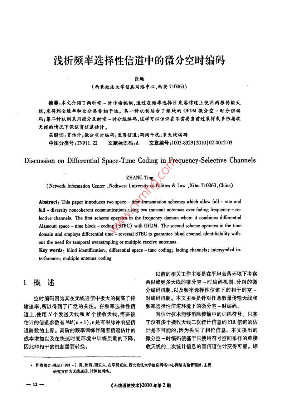 - 期刊名字:無(wú)線通信技術(shù)