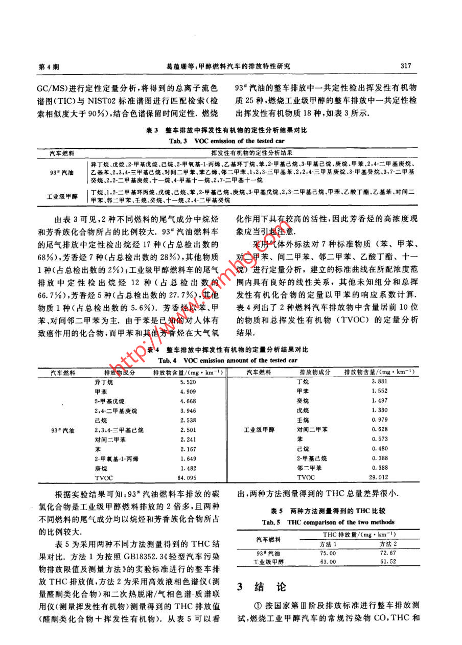 甲醇燃料汽車的排放特性研究