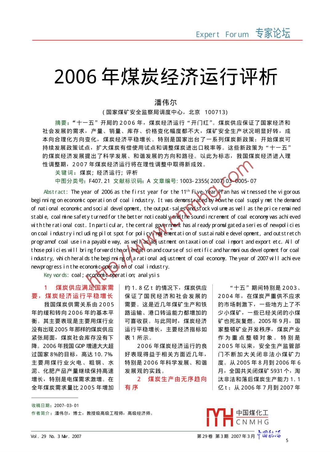 2006年煤炭經(jīng)濟(jì)運(yùn)行評析