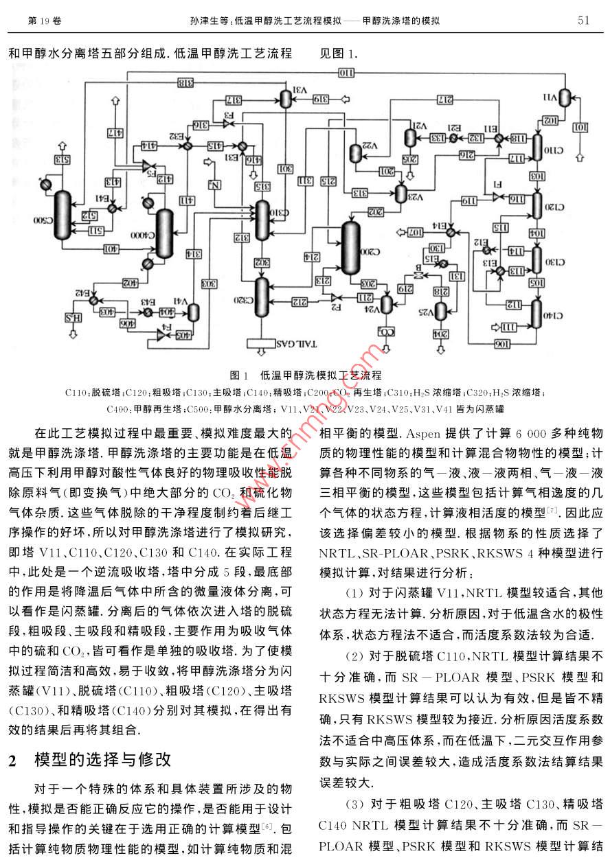 低溫甲醇洗工藝流程模擬——甲醇洗滌塔的模擬
