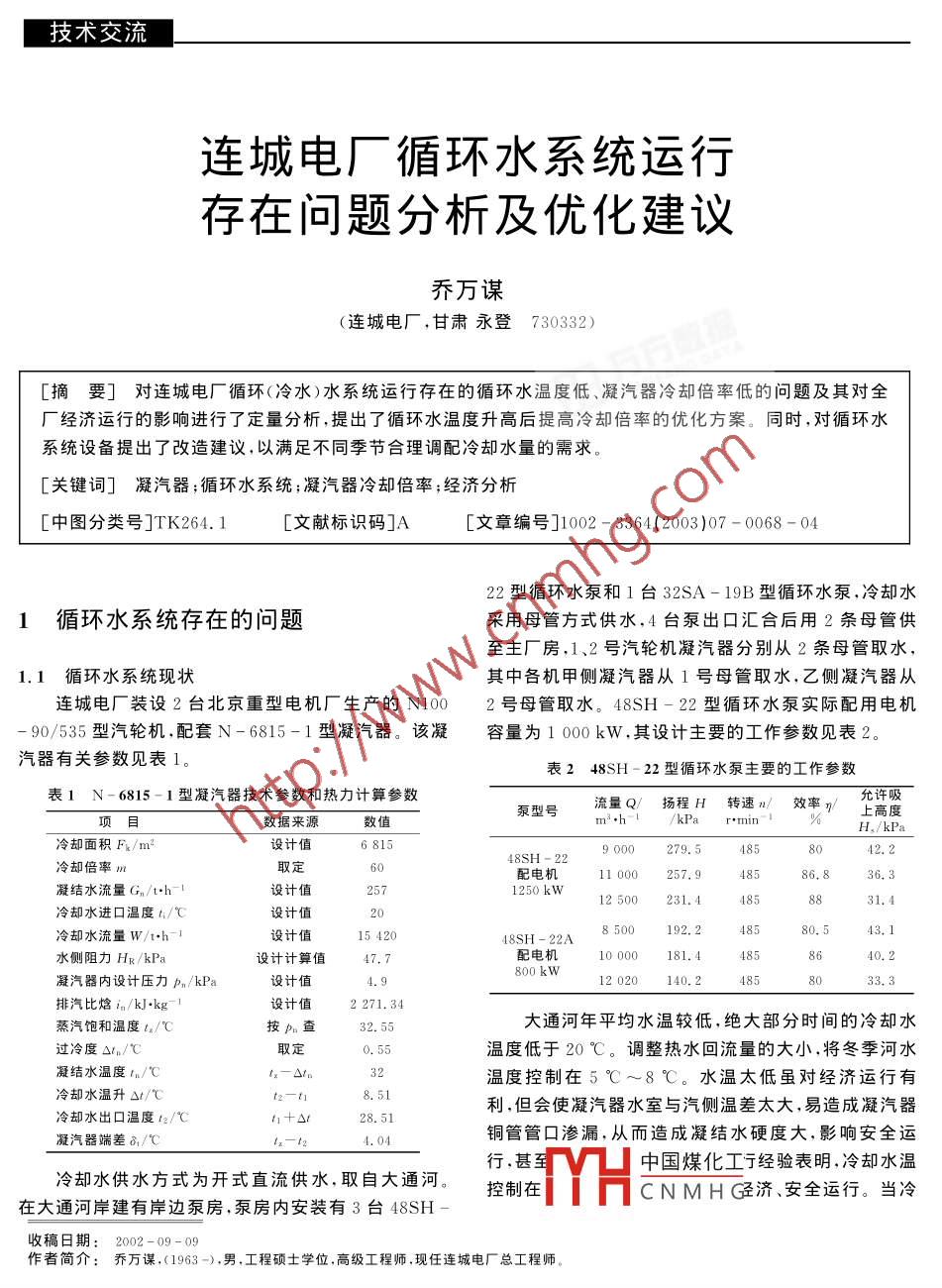 連城電廠(chǎng)循環(huán)水系統(tǒng)運(yùn)行存在問(wèn)題分析及優(yōu)化建議