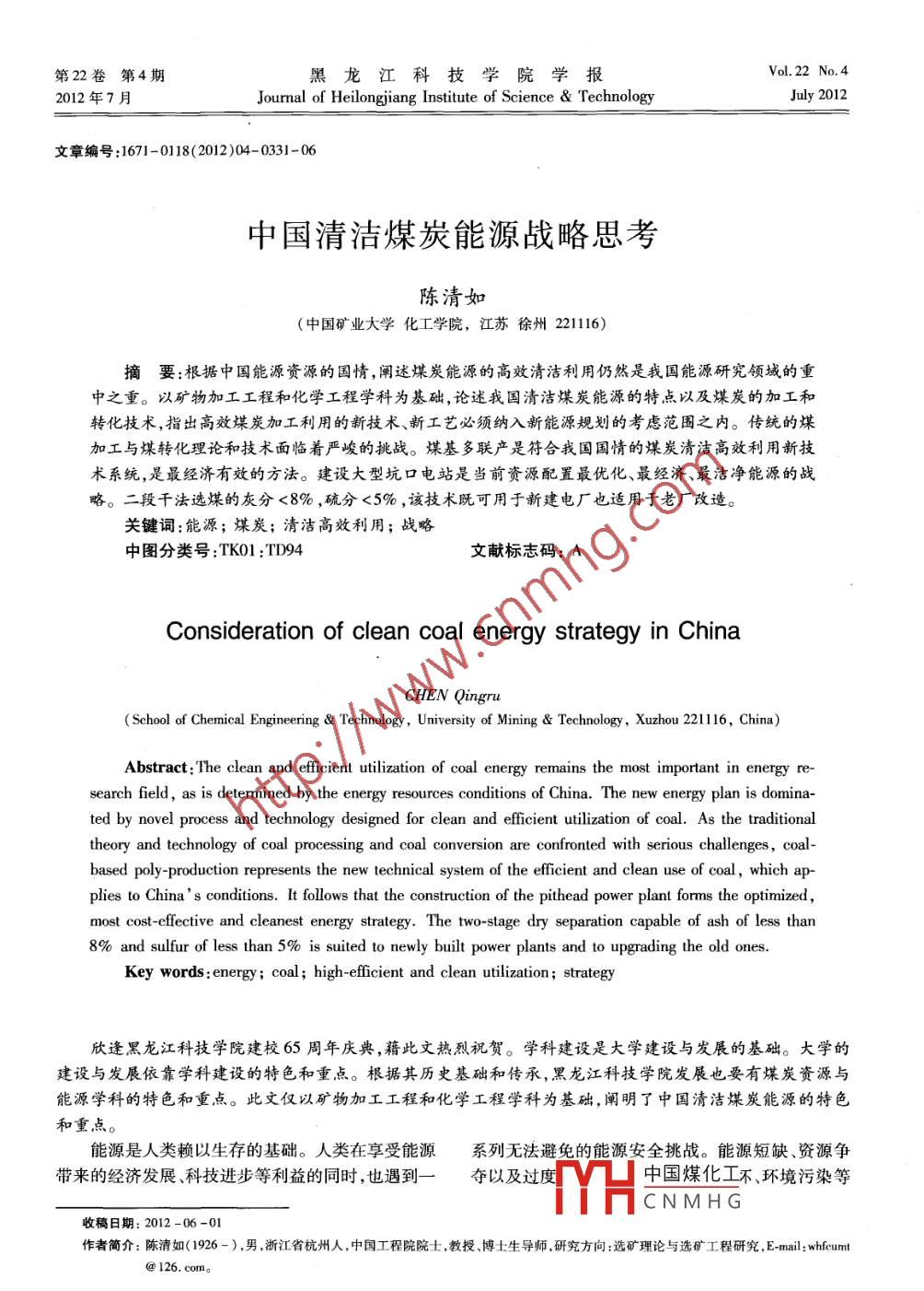 中國(guó)清潔煤炭能源戰(zhàn)略思考