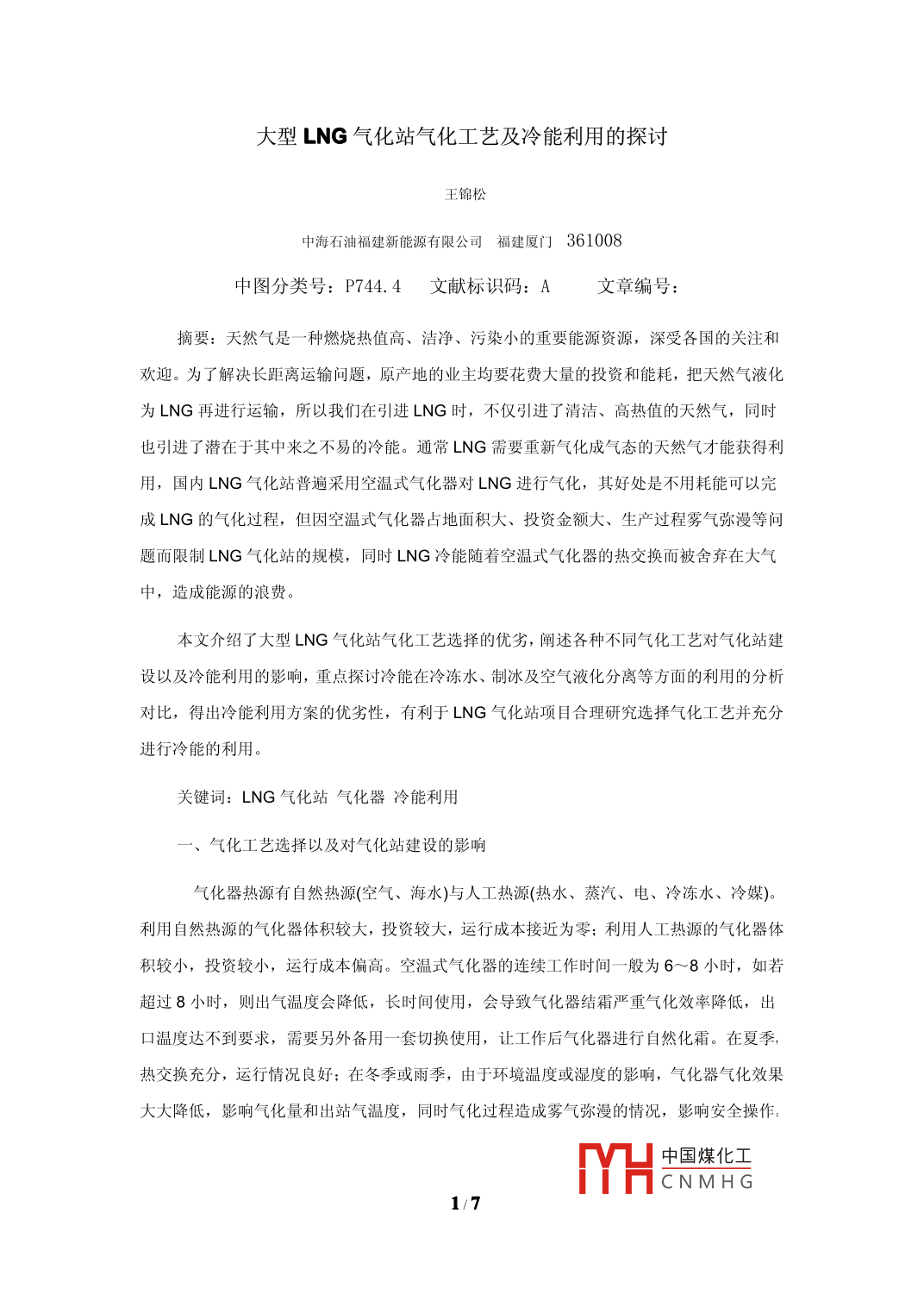 大型LNG氣化站氣化工藝及冷能利用的探討