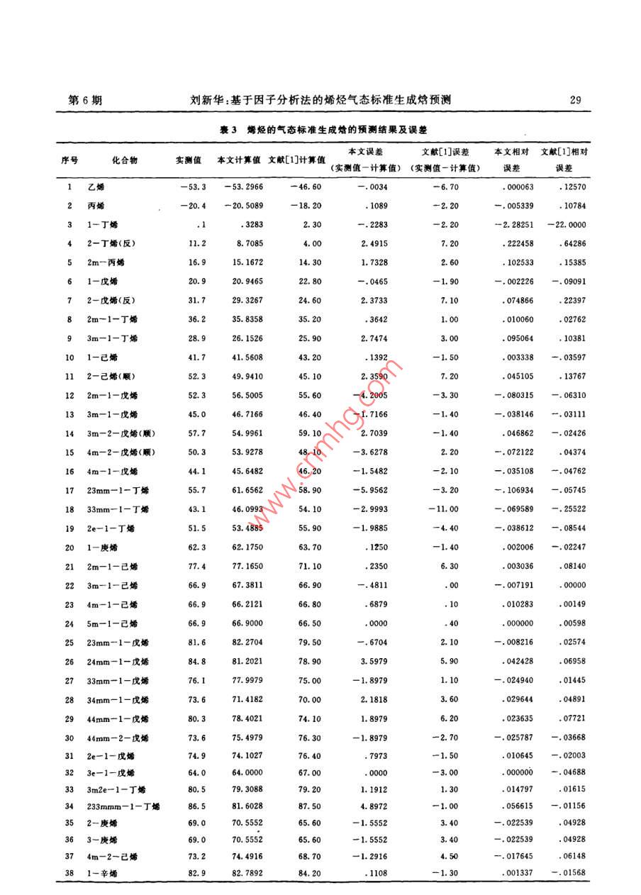 基于因子分析法的烯烴氣態(tài)標(biāo)準(zhǔn)生成焓預(yù)測(cè)