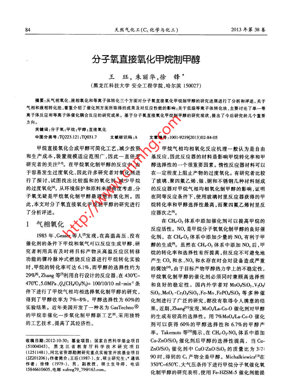 34天然氣化工(C1化學(xué)與化工)2013年第38卷分子氧直接氧化甲烷制甲醇王玨,朱麗華,徐鋒*(黑龍江科技大學(xué)安全工程學(xué)院,哈爾濱150027)摘要:從氣相氧化、液相氧化和等離子體轉(zhuǎn)化三個(gè)方面對(duì)分子氧直接氧化甲烷制甲醇的研究進(jìn)展進(jìn)行了分析和評(píng)述。關(guān)于氣相和液相轉(zhuǎn)化法,著重介紹了催化劑方面所取得的成果及對(duì)反應(yīng)性能的影響;關(guān)于低溫等離子體轉(zhuǎn)化法,主要討論了單一-等離子體反應(yīng)和等離子體催化耦合反應(yīng)的研究成果。基于分子氧直接氧化甲烷制甲醇的研究現(xiàn)狀,提出了今后研究的幾個(gè)重要方向。關(guān)鍵詞:分子氧;甲烷;甲醇;直接氧化中圄分類號(hào):TQ223.121 ;TQ031.7文獻(xiàn)標(biāo)識(shí)碼:A文章編號(hào):1001-9219(2013)02-84-05甲烷直接氧化合成甲醇可簡(jiǎn)化工藝,減少投資甲烷氣相均相氧化反應(yīng)機(jī)理一般認(rèn)為是自由和生產(chǎn)成本,裝置規(guī)模適應(yīng)范圍廣,因此- -直倍受基反應(yīng),因此反應(yīng)器的材料是影響甲烷轉(zhuǎn)化率和甲研究者的關(guān)注3。在甲烷氧化制甲醇的反應(yīng)中,由醇選擇性的一個(gè)很重要因素。惰性反應(yīng)器材料可以于容易發(fā)生過度氧化,因此許多研究者對(duì)氧化劑進(jìn)在一定程度上阻止產(chǎn)物的過度氧化。有研究者比較行了探討,試圖找出比較溫和的氧化劑,減少甲烷了玻璃、聚四氟乙烯、銀、銅和不銹鋼幾種材料制成的過度氧化4。從環(huán)境保護(hù)和原料來(lái)源角度考慮,分的反應(yīng)器對(duì)甲烷氣相均相氧化制甲醇的影響,證明子氧無(wú)疑是甲烷氧化制甲醇最理想的氧化劑。因在同等反應(yīng)條件下,使用玻璃襯里反應(yīng)器獲得的甲此,本文對(duì)分子氧直接氧化甲烷制甲醇的研究進(jìn)行烷轉(zhuǎn)化率和甲醇選擇性最高,而聚四氟乙烯襯里反了分析評(píng)述。應(yīng)器次之間。在CH-O2體系中添加催化劑可以提高甲烷的1氣相氧化反應(yīng)活性。NO, 是甲烷分子氧氧化制甲醇的良好催1985年,Gesser等人發(fā)現(xiàn),在高溫高壓、沒有化劑。在CH2O2體系中添加少量的NO,有利于甲催化劑的條件下甲烷和氧氣可以反應(yīng)生成甲醇,研醇的生成回。雖然在CH-O2體系中添加NO2后,甲究者利用具有及時(shí)將目標(biāo)產(chǎn)物從高溫反應(yīng)區(qū)轉(zhuǎn)移烷的轉(zhuǎn)化率和選擇性有所提高,但反應(yīng)不可避免地功能的驟冷脈沖式燃燒反應(yīng)器進(jìn)行甲烷轉(zhuǎn)化實(shí)驗(yàn)產(chǎn)生CO,和水,NO,和水存在時(shí)會(huì)對(duì)設(shè)備造成嚴(yán)重時(shí),甲烷的轉(zhuǎn)化率可達(dá)6.1%,而甲醇的選擇性約為的腐蝕!。由于目標(biāo)產(chǎn)物甲醇熱力學(xué)上的不穩(wěn)定性,29%6。Zhang等四利用自行設(shè)計(jì)的反應(yīng)器,在4309C~甲烷氧化制甲醇的催化劑必須同時(shí)兼顧高選擇性4709C. 5.0MPa Q.(CH/O2N)= 100/10/10 ml. min:'條和良好的穩(wěn)定性。國(guó)內(nèi)外學(xué)者對(duì)MoO/SiO2、V2OJ件下進(jìn)行了甲烷氣相均相選擇氧化制甲醇的研究,SiO2、MoO3●Cr2O2/SiO2、Fe-Mo、FePOJSiO2等多種催得到了甲醇收率為7%~8%,甲醇選擇性為60%的化劑進(jìn)行了廣泛的研究,都沒有取得令人滿意的結(jié)實(shí)驗(yàn)結(jié)果。近年美國(guó)開發(fā)了一種名為GasTechno⑧果。近期,Zhang"發(fā)現(xiàn), MoO/La-Co-O催化劑對(duì)甲醇的甲烷非催化--步氧化制甲醇新工藝圈,采用獨(dú)特的生成有較高的選擇性。用7%MoOJ/La-Co-0催化的工藝技術(shù),提高了其經(jīng)濟(jì)性。劑可以獲得60%的甲醇選擇性和6.7%的甲醇產(chǎn)率。Takemoto等凹揭示,在CH-OrNO,體系中添加收稿日期:2012-10-30;基金項(xiàng)目:國(guó)家自然科學(xué)基金項(xiàng)目Cu-ZnO/SiO2催化劑后甲醇的選擇性提高,當(dāng)Cu-(51004045),黑龍江省教育廳科學(xué)技術(shù)研究項(xiàng)目ZnO/SiO2催化劑中CuO:ZnO;SiO2的質(zhì)量比為3:7:(12511481),河北省資源勘測(cè)研究重點(diǎn)實(shí)驗(yàn)室開放基金項(xiàng)目90時(shí),得到的C;產(chǎn)物全是甲醇。Michalkiewicz在(2201206);作者簡(jiǎn)介:王玨(1987-),女,碩士研究生;*通訊作者:徐鋒(1979-), 男,副教授,碩士生導(dǎo)師,電話3509C~6509C、大氣壓條件下進(jìn)行甲烷分子氧催化氧15846610605 ,電郵xufeng79_ _79@163.com。化制甲醇的研究表明,使用Fe-HZSM-5催化劑能提第2期王玨等:分子氧直接氧化甲 烷制甲醇8高甲烷的轉(zhuǎn)化率,n(Si)/n(Fe)=22時(shí)轉(zhuǎn)化率最高,達(dá)2003年,Mukhopadhyay等網(wǎng)以PdCl-CuCl2 為31.51%;使用Fe-NaZSM-5催化劑能提高甲醇的選催化劑,在H2SO4溶液中通過SO2與CH4的作用合擇性,n(Si)n(Fe)=45時(shí),選擇性最高,達(dá)74.37%。最成了CHSO2H。近,Herejgers等叫考察了分子氧氣相選擇氧化甲烷2004年,Neumann等叫以[Pr (mebipym)Cl2]+-制甲醇反應(yīng)中,負(fù)載金的催化劑的作用。對(duì)于負(fù)載[HPV2MoroO40]-/SiO2為催化劑、H2SO4 或型貴金屬催化劑,提高其在載體上的分散度對(duì)改善HsPV2MonoOo的水溶液為溶劑,在50C、有氧條件下催化劑的性能意義重大。成功合成了甲醇。對(duì)于甲烷的氣固多相催化反應(yīng),催化劑的填放受生物氧化的啟發(fā),An等網(wǎng)于2006年,在.位置影響著甲醇的生成及產(chǎn)物分布。Zhang 等I等CFsCOOH介質(zhì)中,以Pd2+作為甲烷氧化的活性中將反應(yīng)劃分為“前反應(yīng)區(qū)”