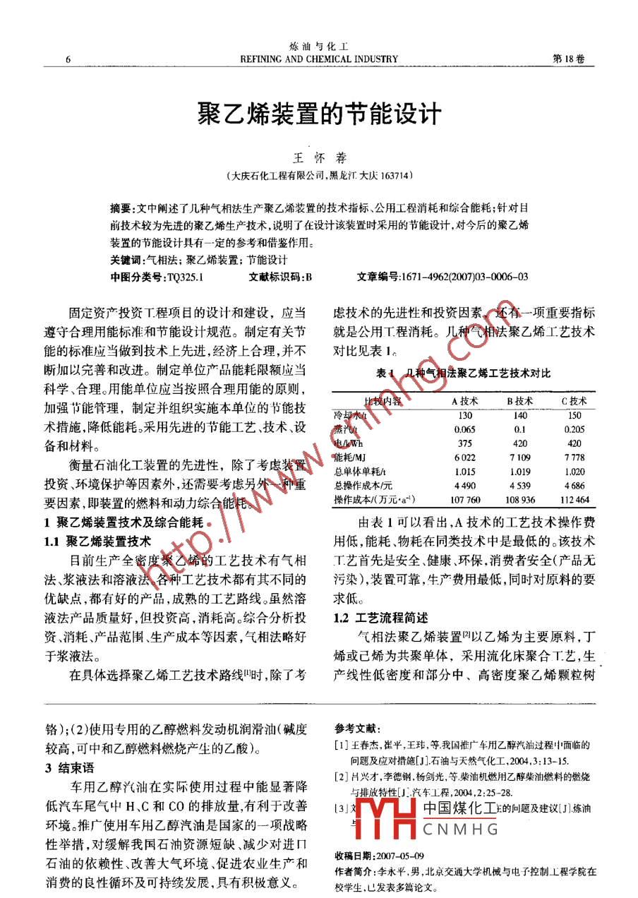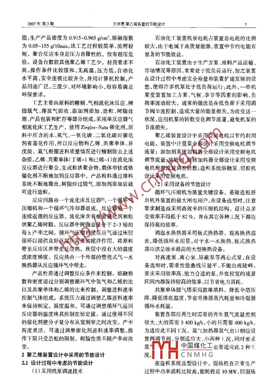 聚乙烯裝置的節(jié)能設(shè)計(jì)