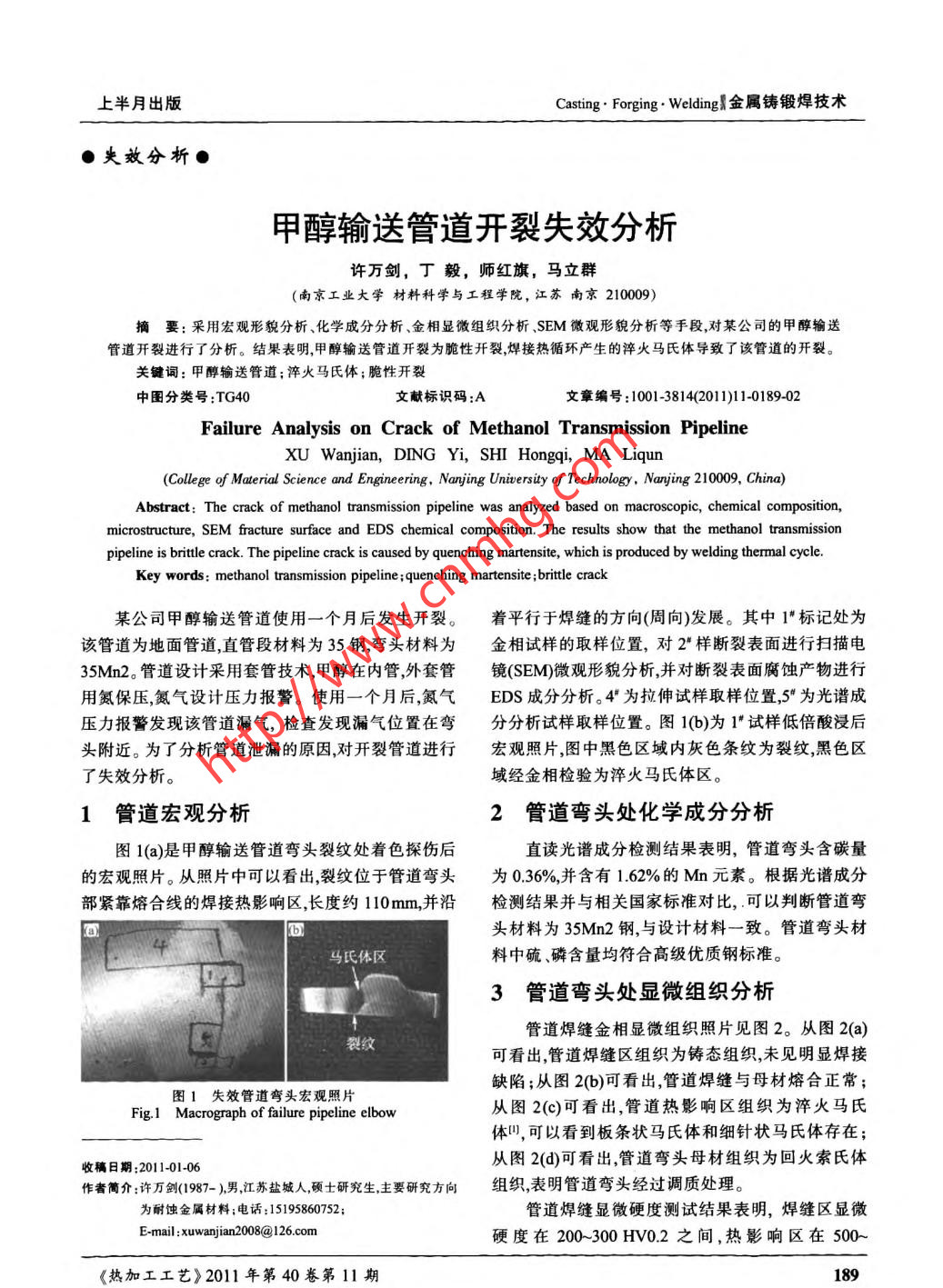 甲醇輸送管道開裂失效分析